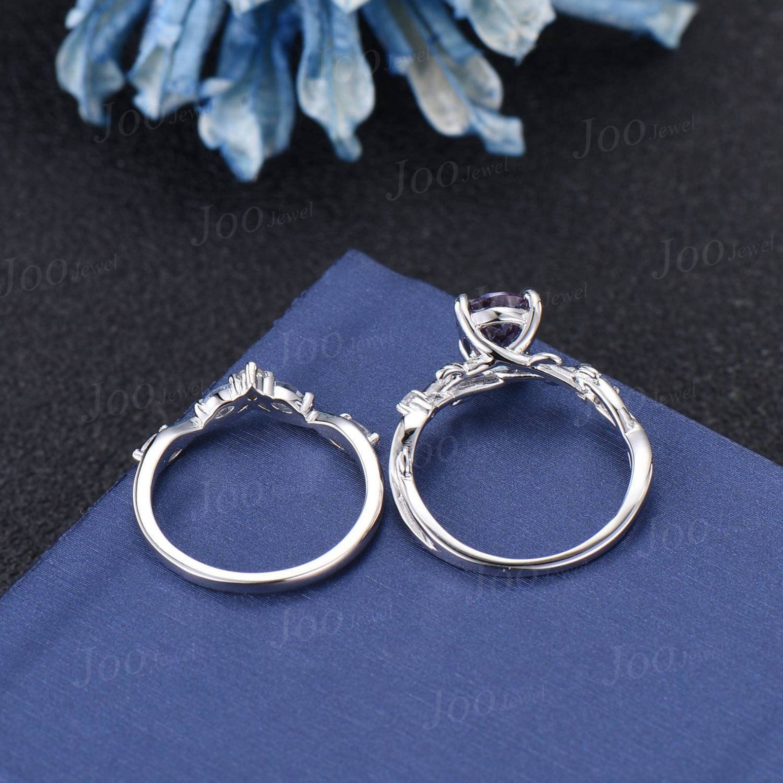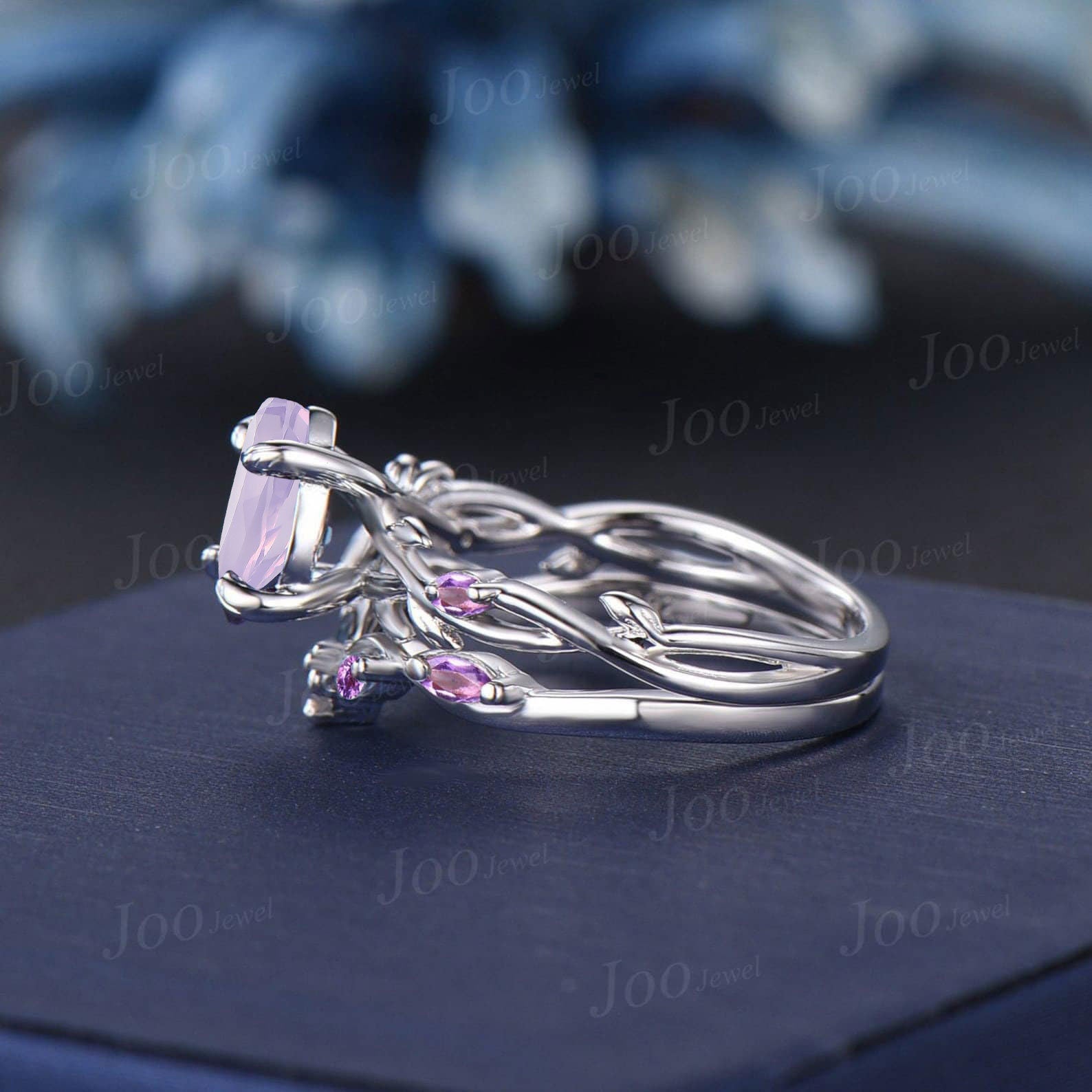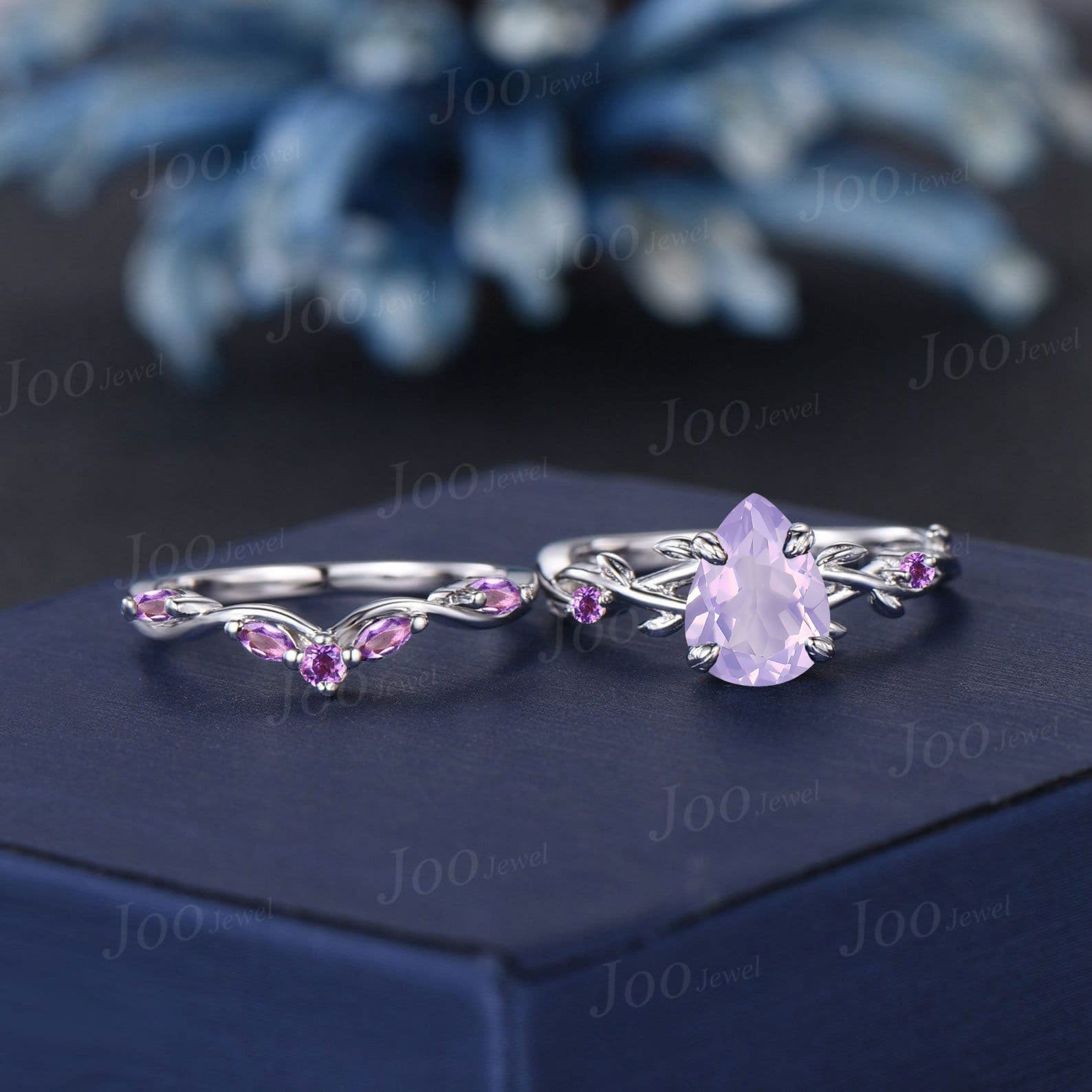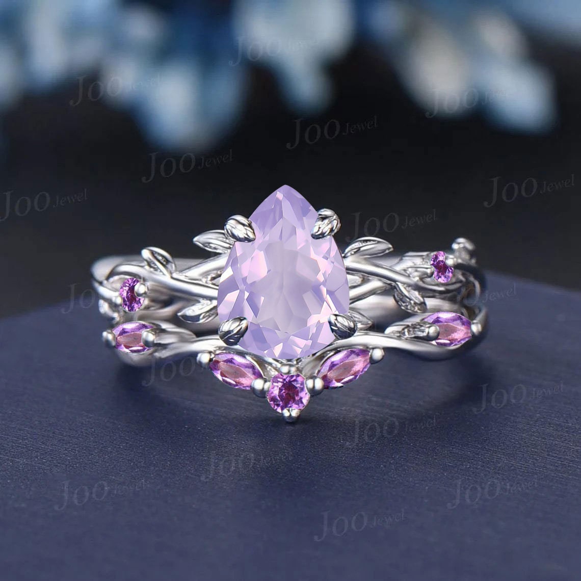 1.25ct Nature Inspired Pear Cut Natural Lavender Amethyst Bridal Ring Set Sterling Silver Light Purple Crystal Twig Vine Wedding Ring Gift