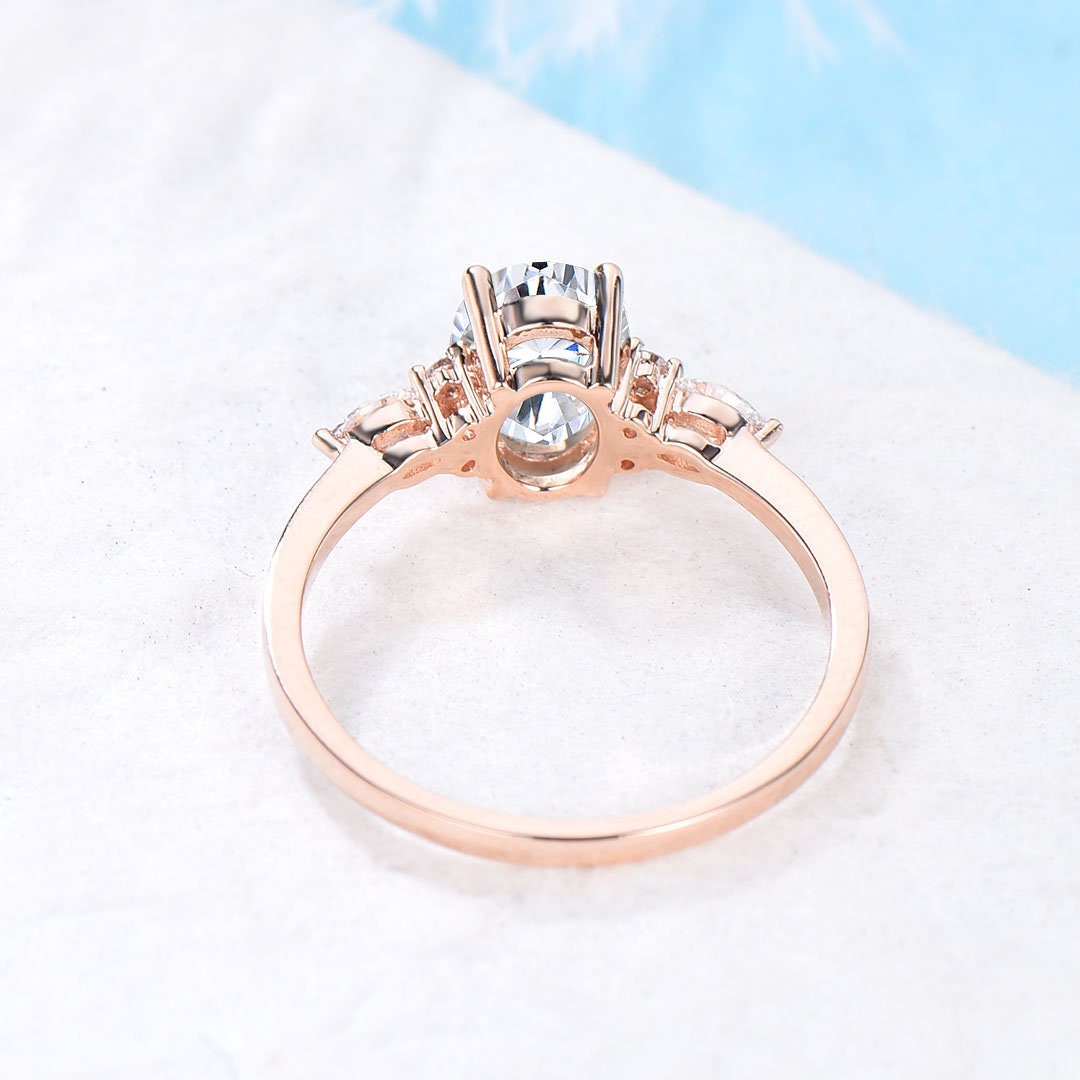 1.5CT Oval Cut Lab Grown Diamond Engagement Ring with IGI Certificate 10K Rose Gold Proposal Ring Unique Bridal Anniversary Gifts for Women