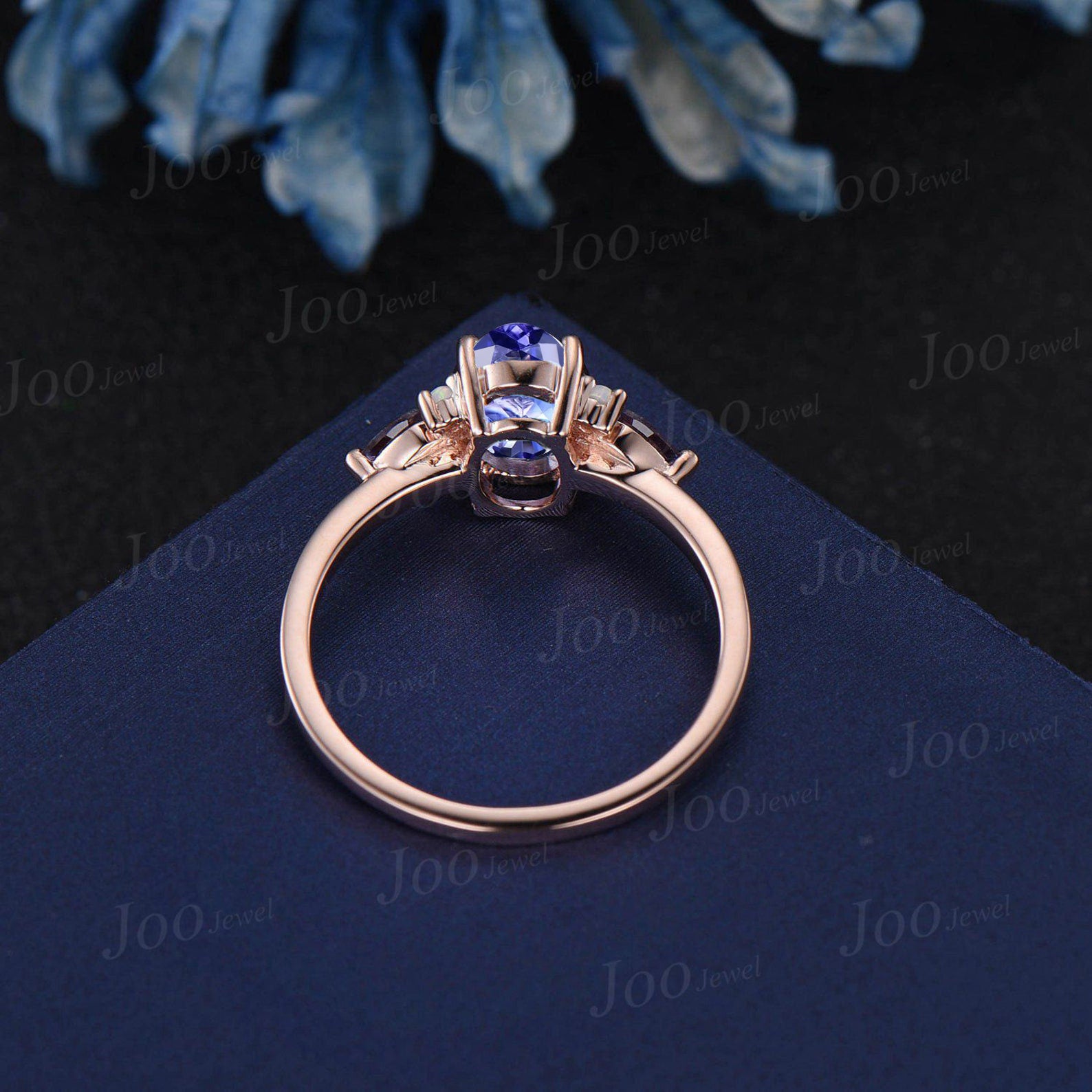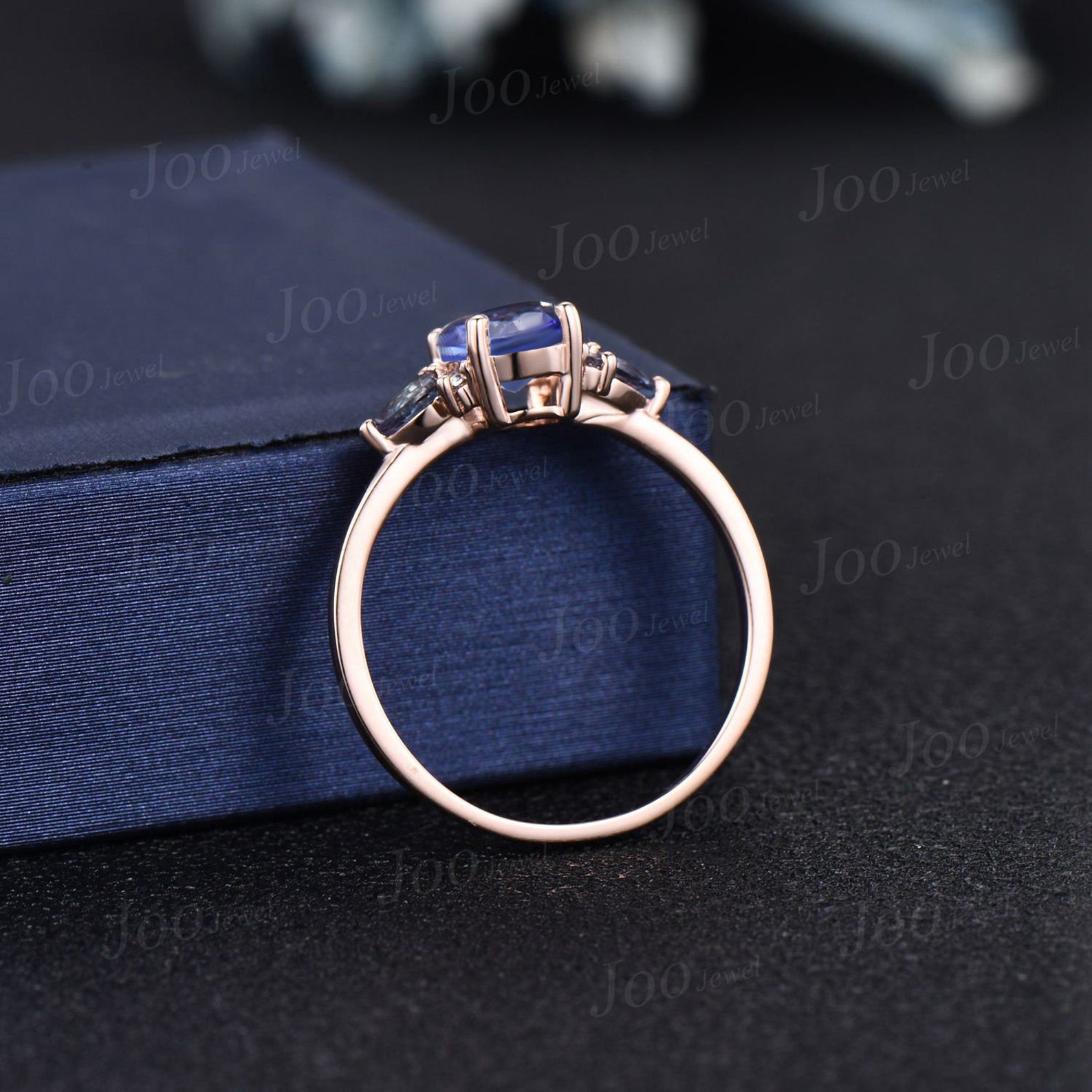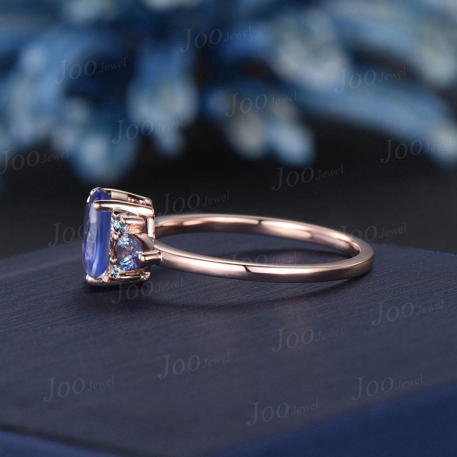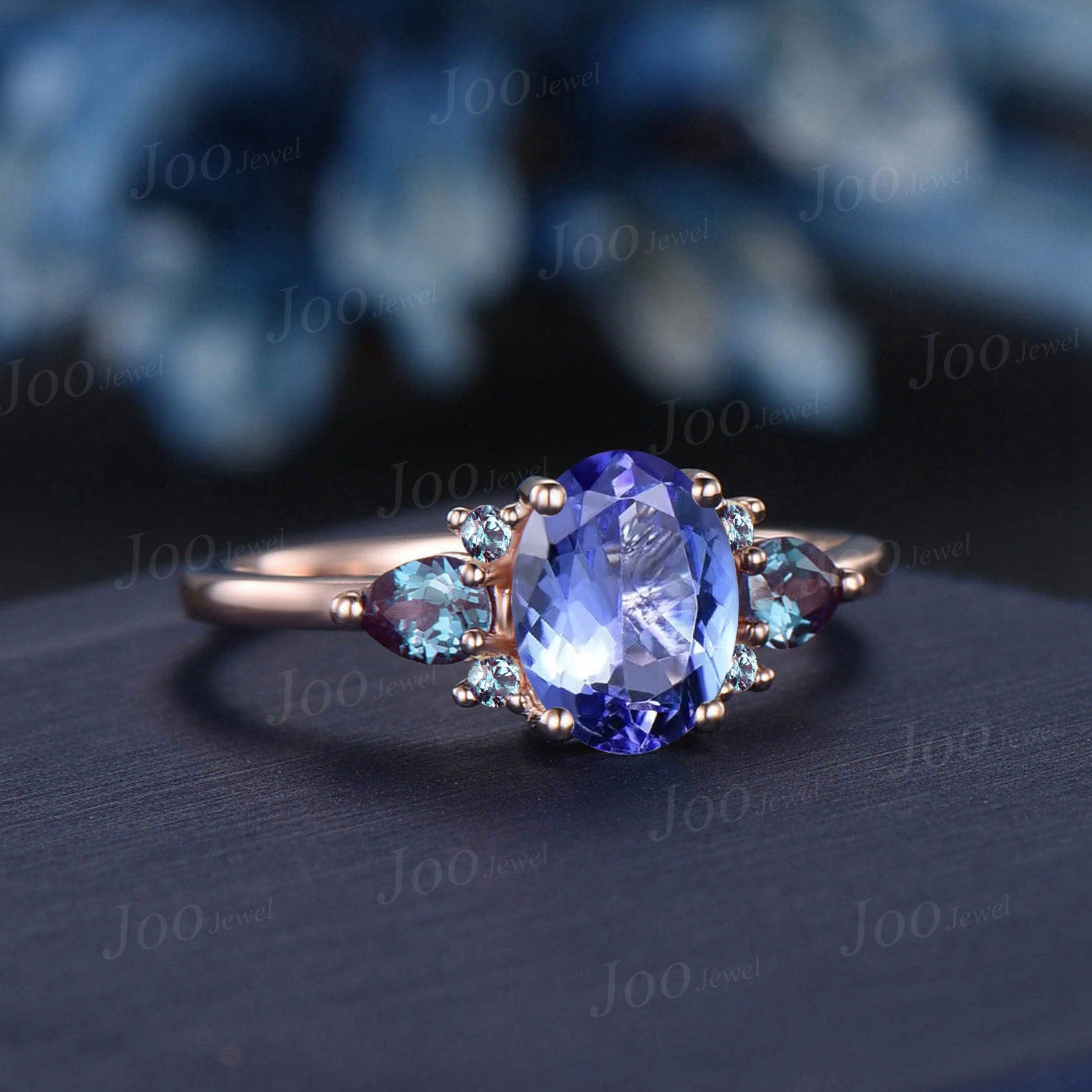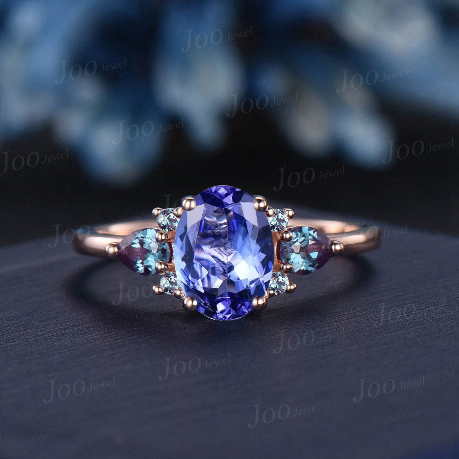 1.5ct Oval Cut Natural Tanzanite Engagement Ring Cluster Pear Alexandrite Ring Unique December Birthstone Birthday Gifts Blue Gemstone Rings