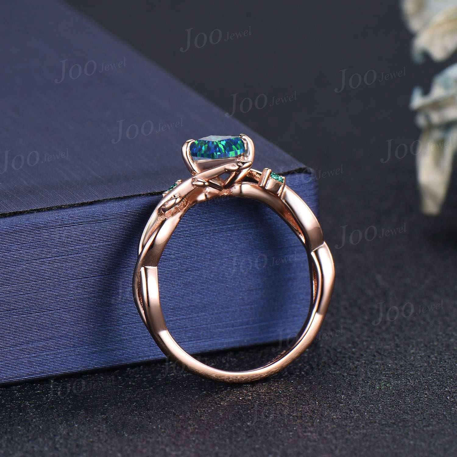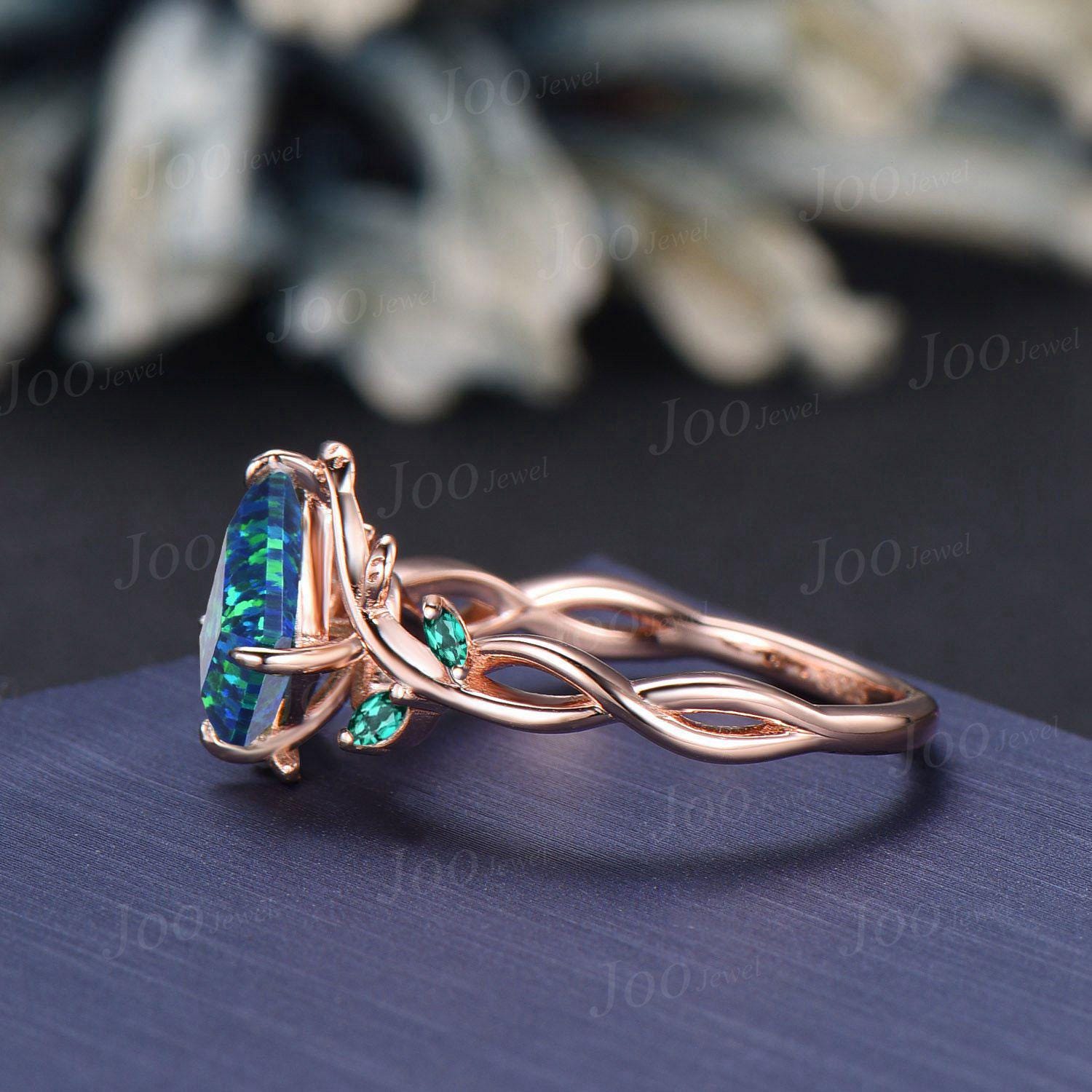Nature Inspired Jewelry, Twig Opal Ring Set , 10K Rose Gold, Kite Cut Ring, Branch Engagement Ring, Emerald Wedding Ring , October Birthstone, Birthday Gifts