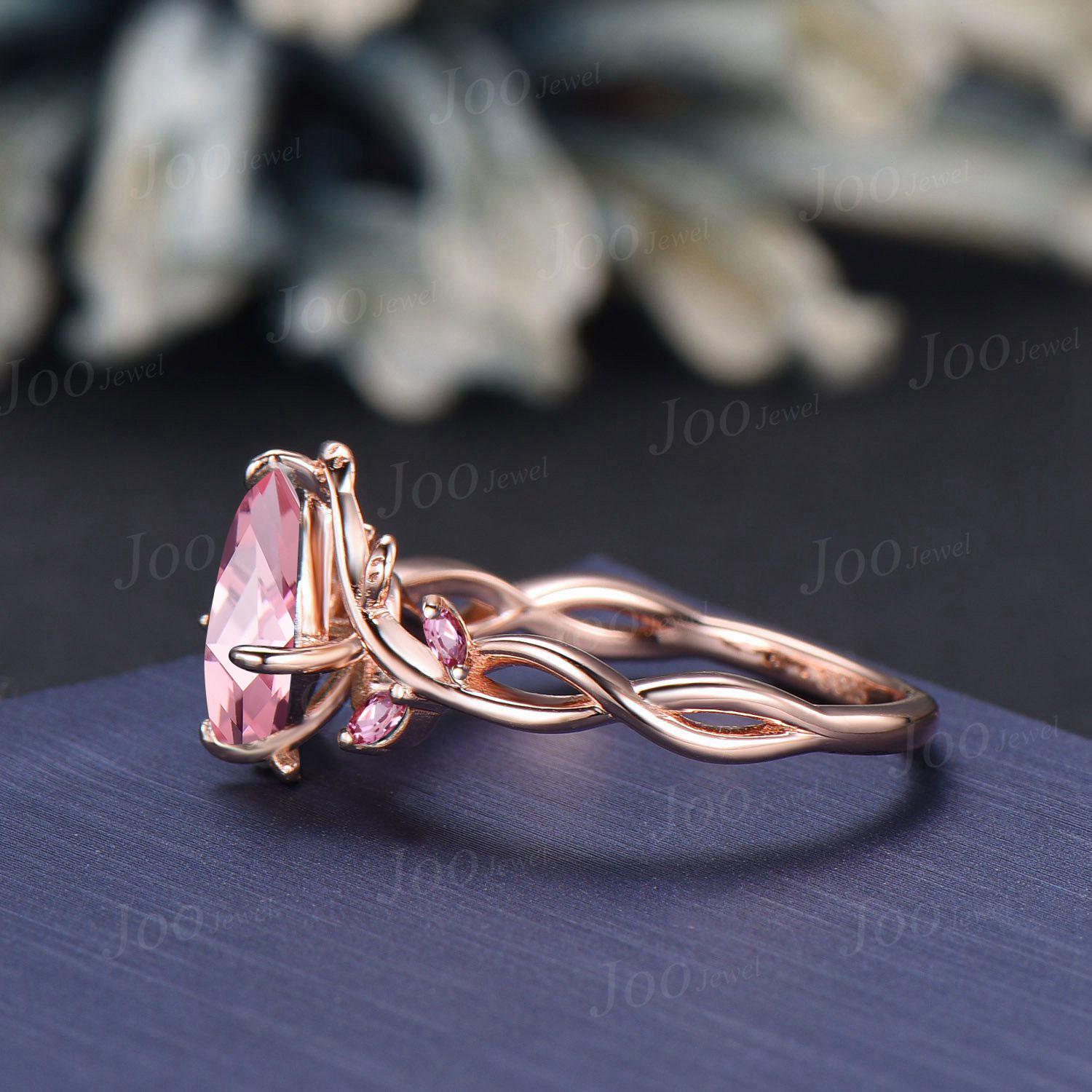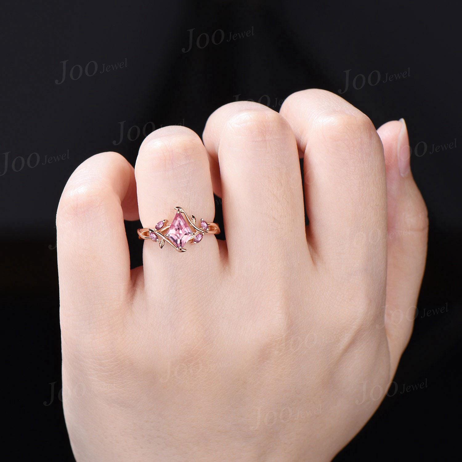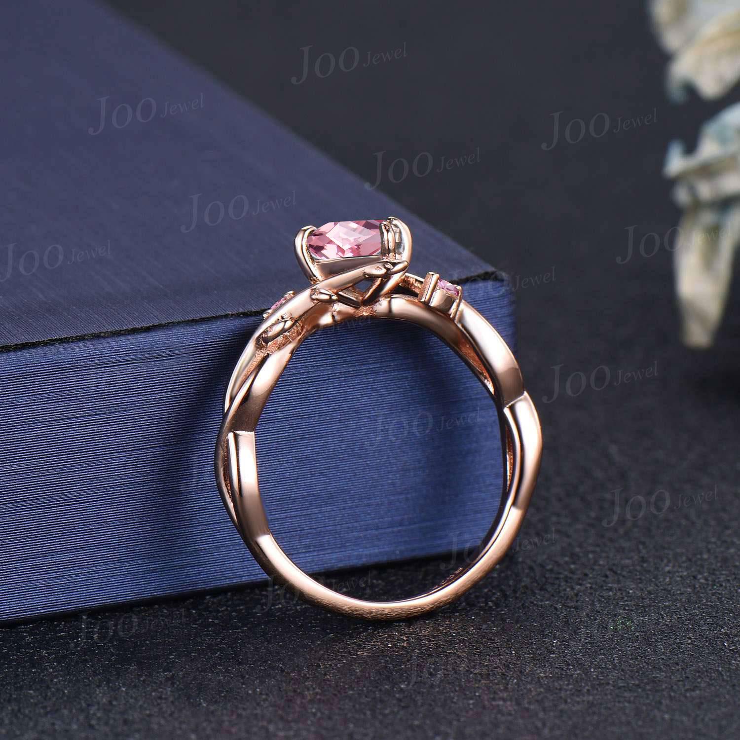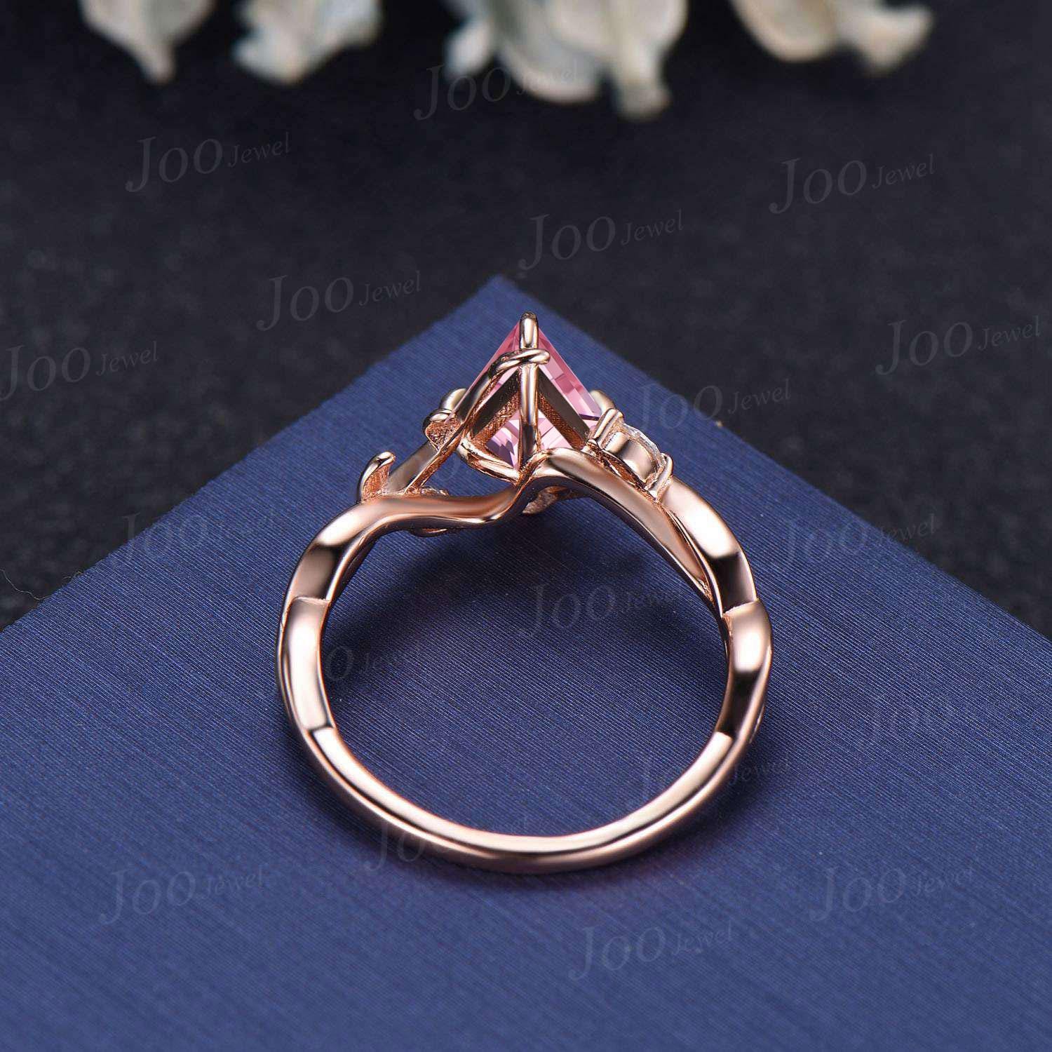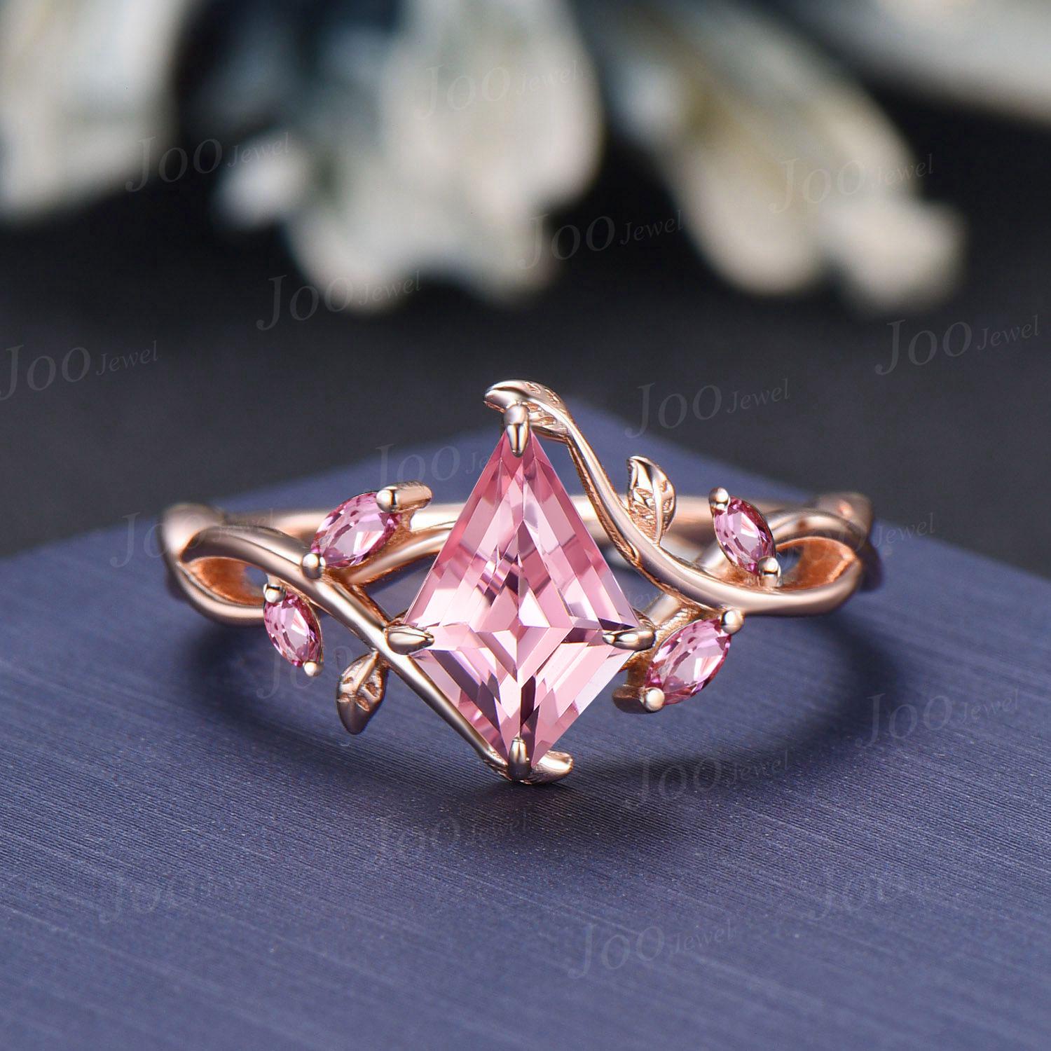 1ct Kite Cut Padparadscha Pink Sapphire Infinity Engagement Ring Leaf Vine Pink Tourmaline Wedding Bridal Ring Nature Themed Wedding Jewelry