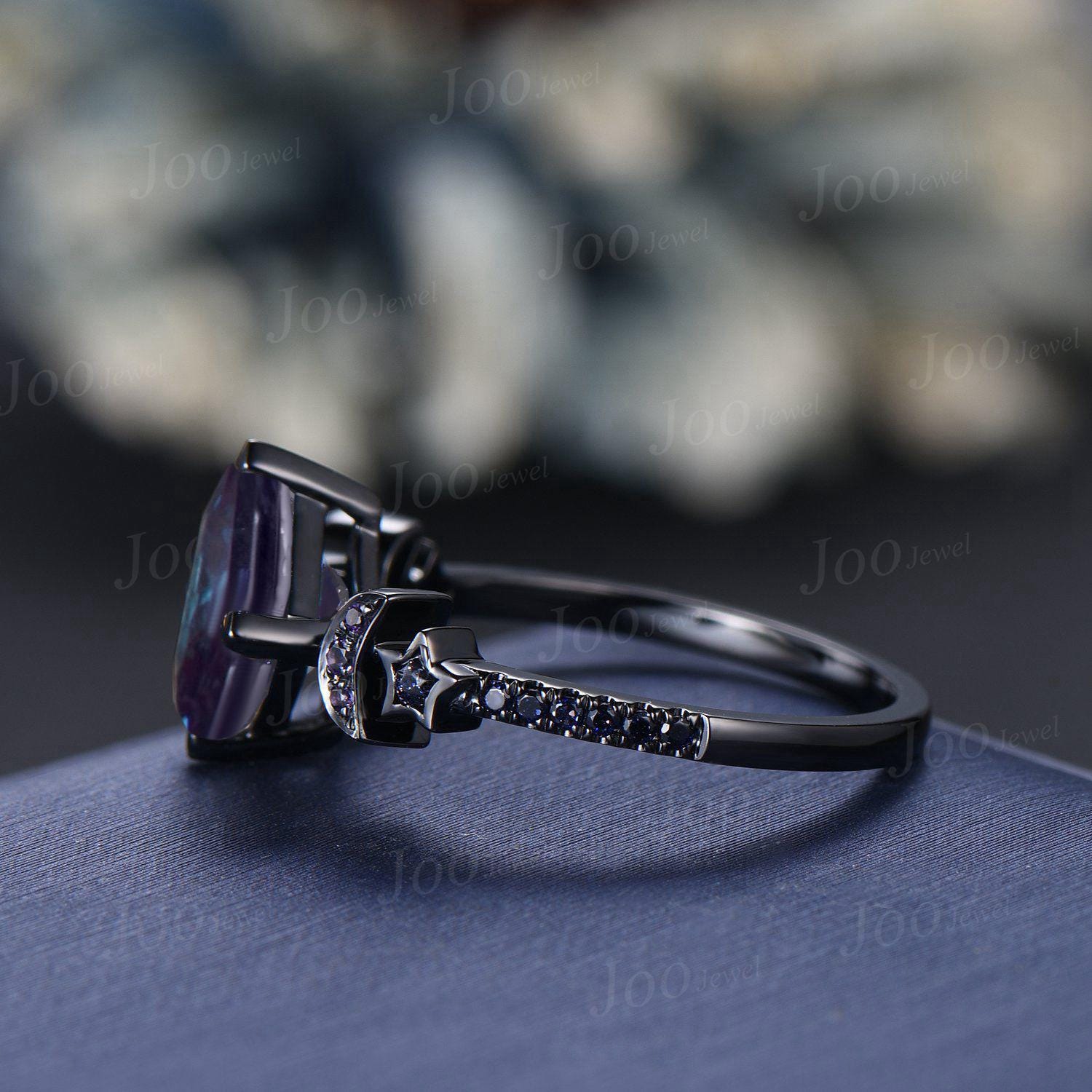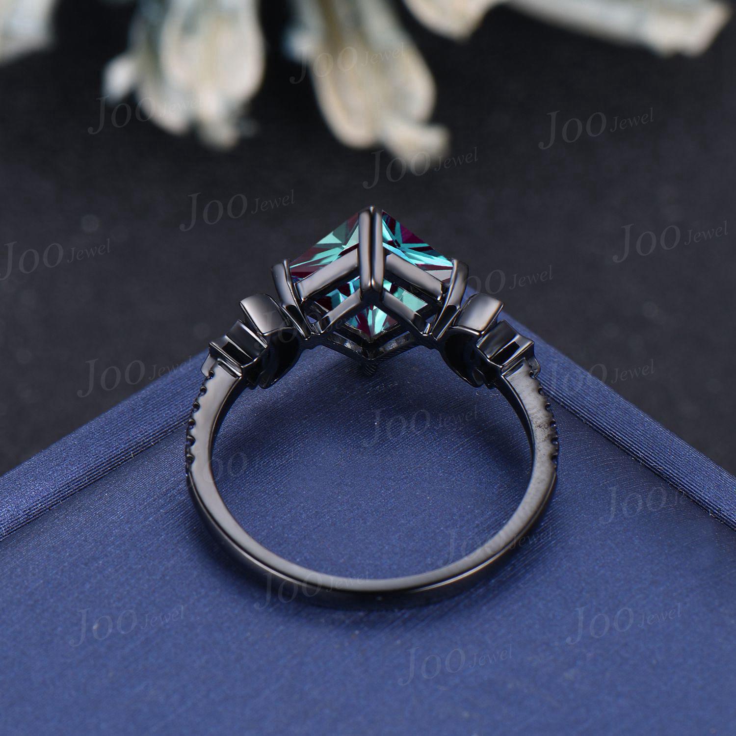 2ct Princess Cut Color-Change Alexandrite Sandstone Ring Gothic Black Gold Proposal Ring June Birthstone Ring Anniversary Gifts for Women