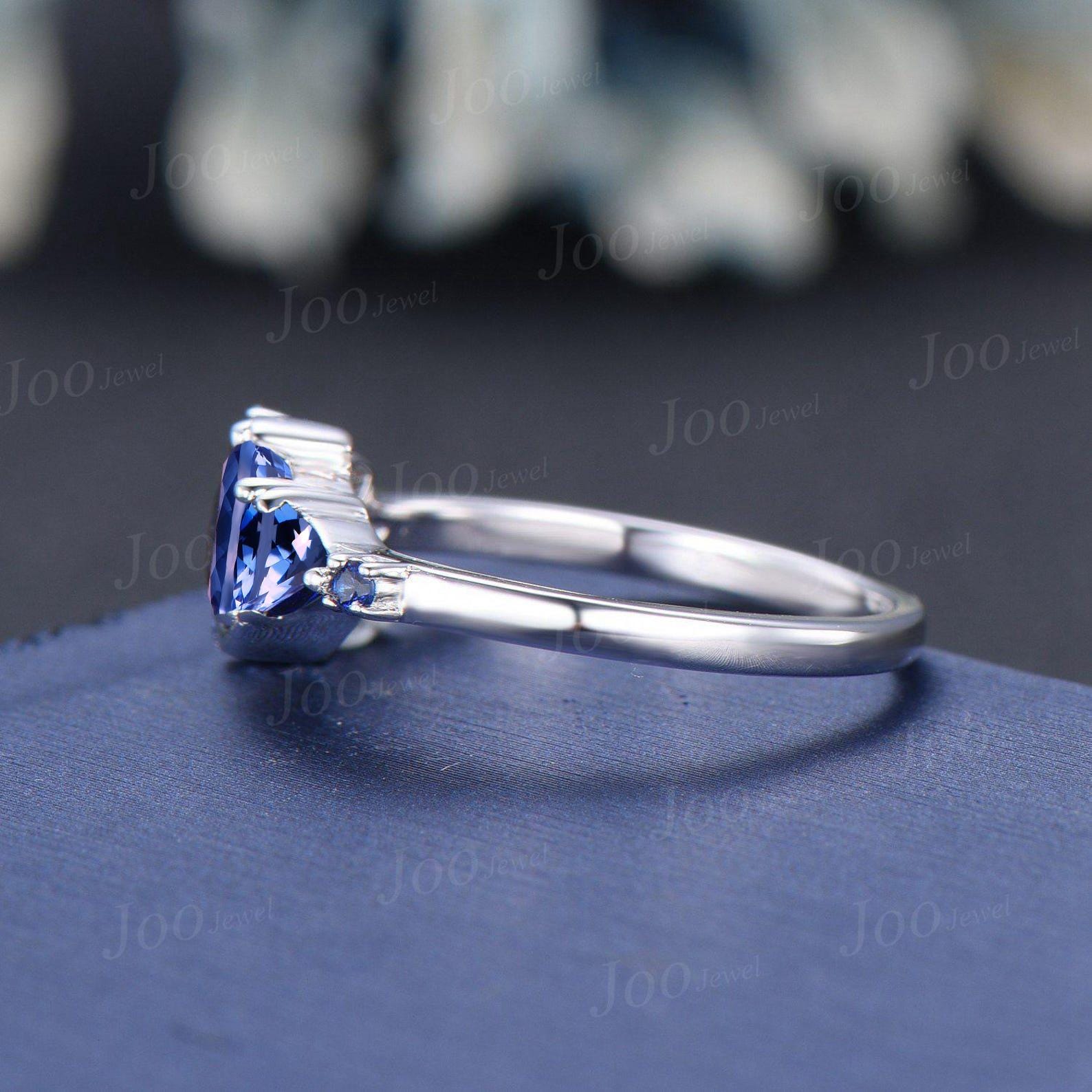 5mm Round Cut Natural Tanzanite Cluster Engagement Ring Unique Sterling Silver Tanzanite Blue Sapphire Crescent Moon Wedding Ring for Women