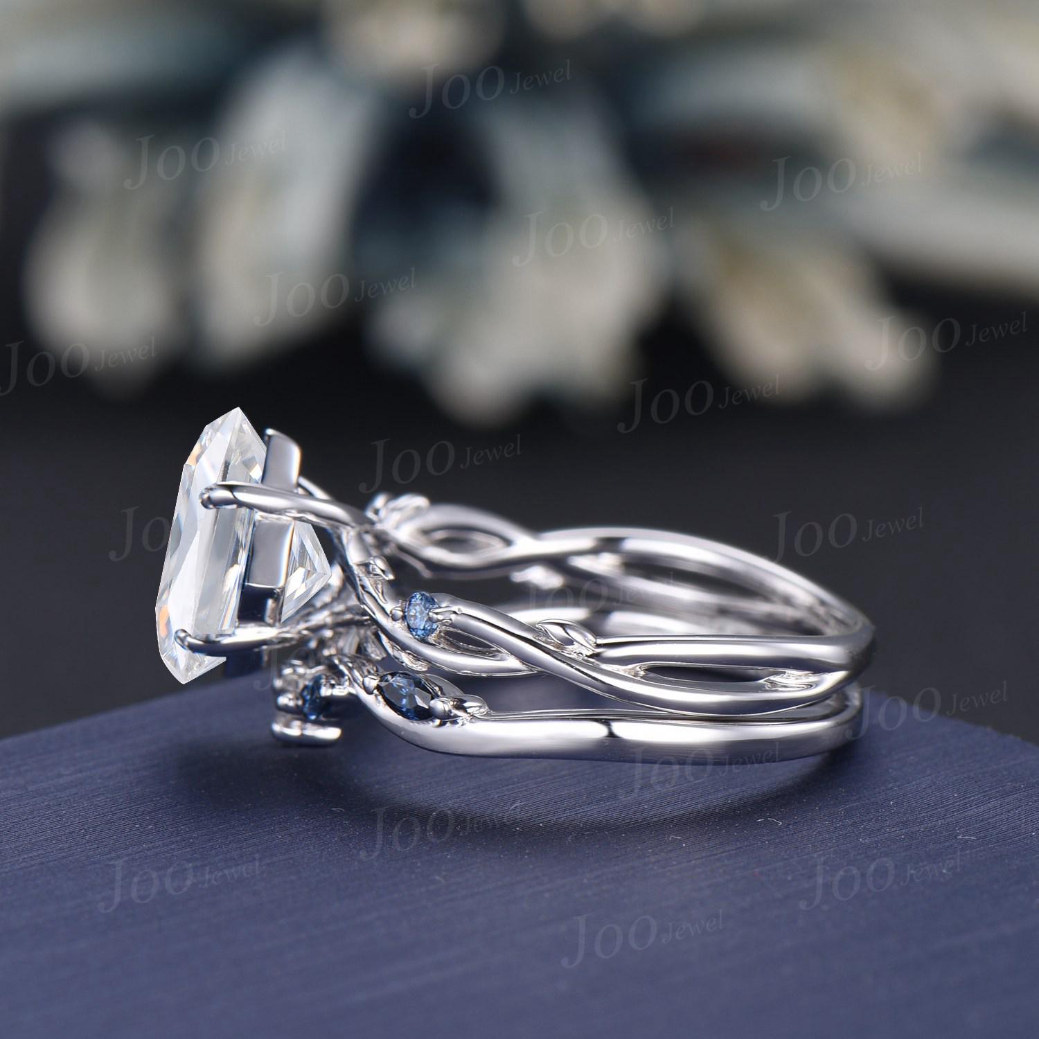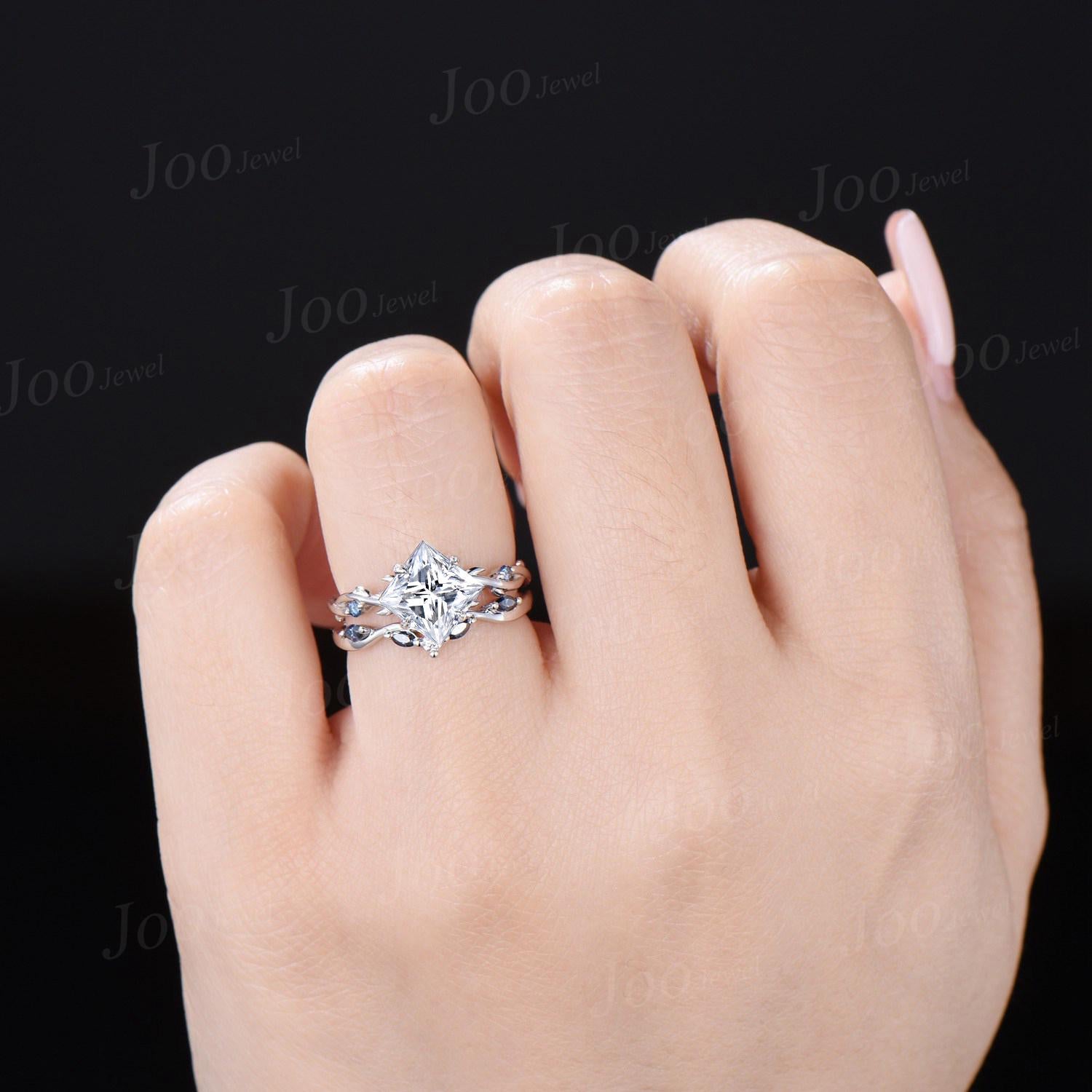 7mm Princess Cut IGI Certified Lab Grown Diamond Branch Bridal Ring Set Square Diamond Wedding Ring Unique Luxury Platinum Proposal Rings