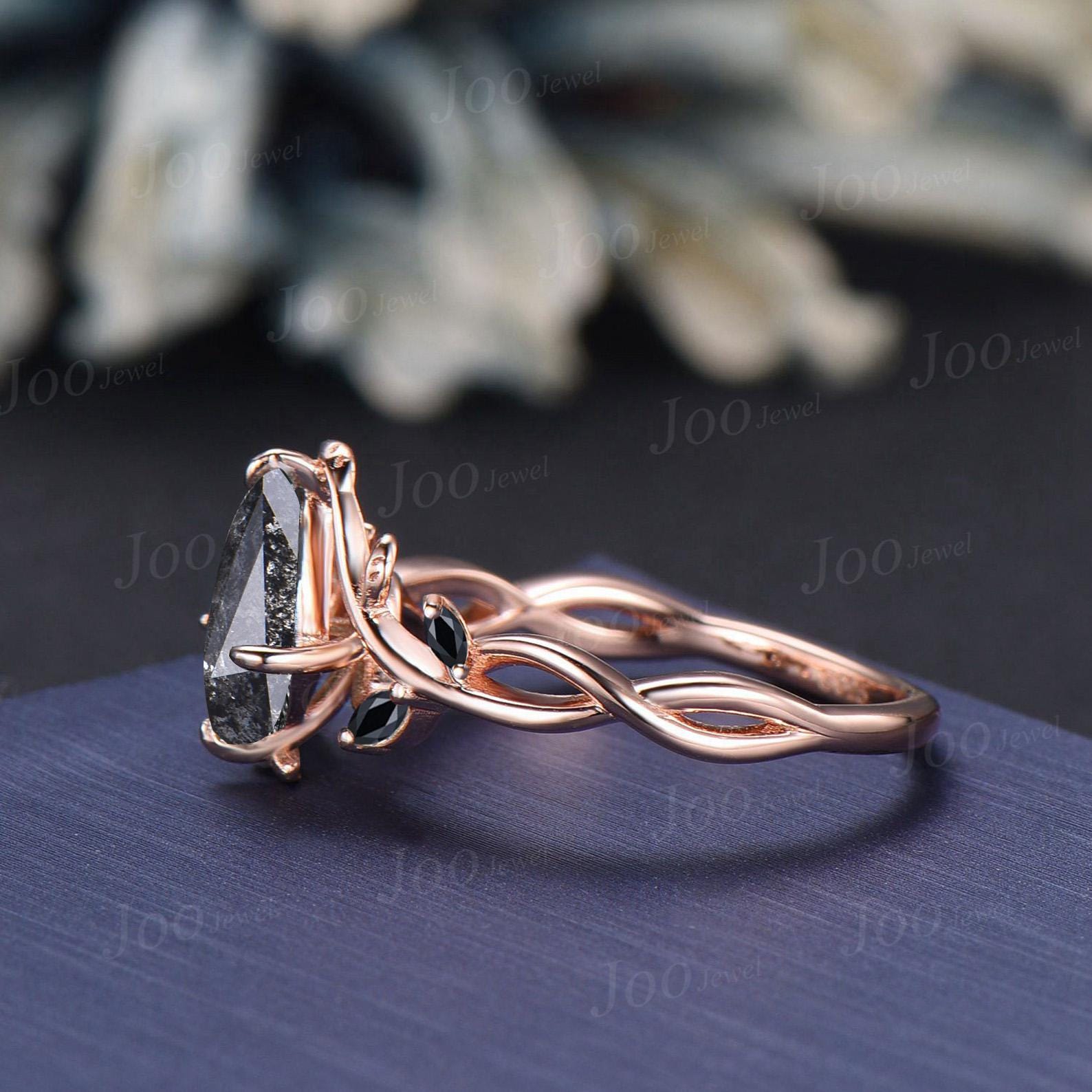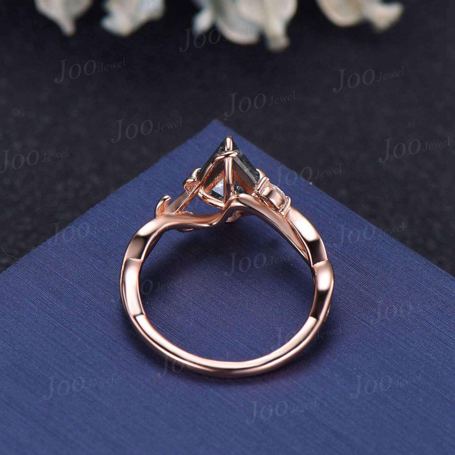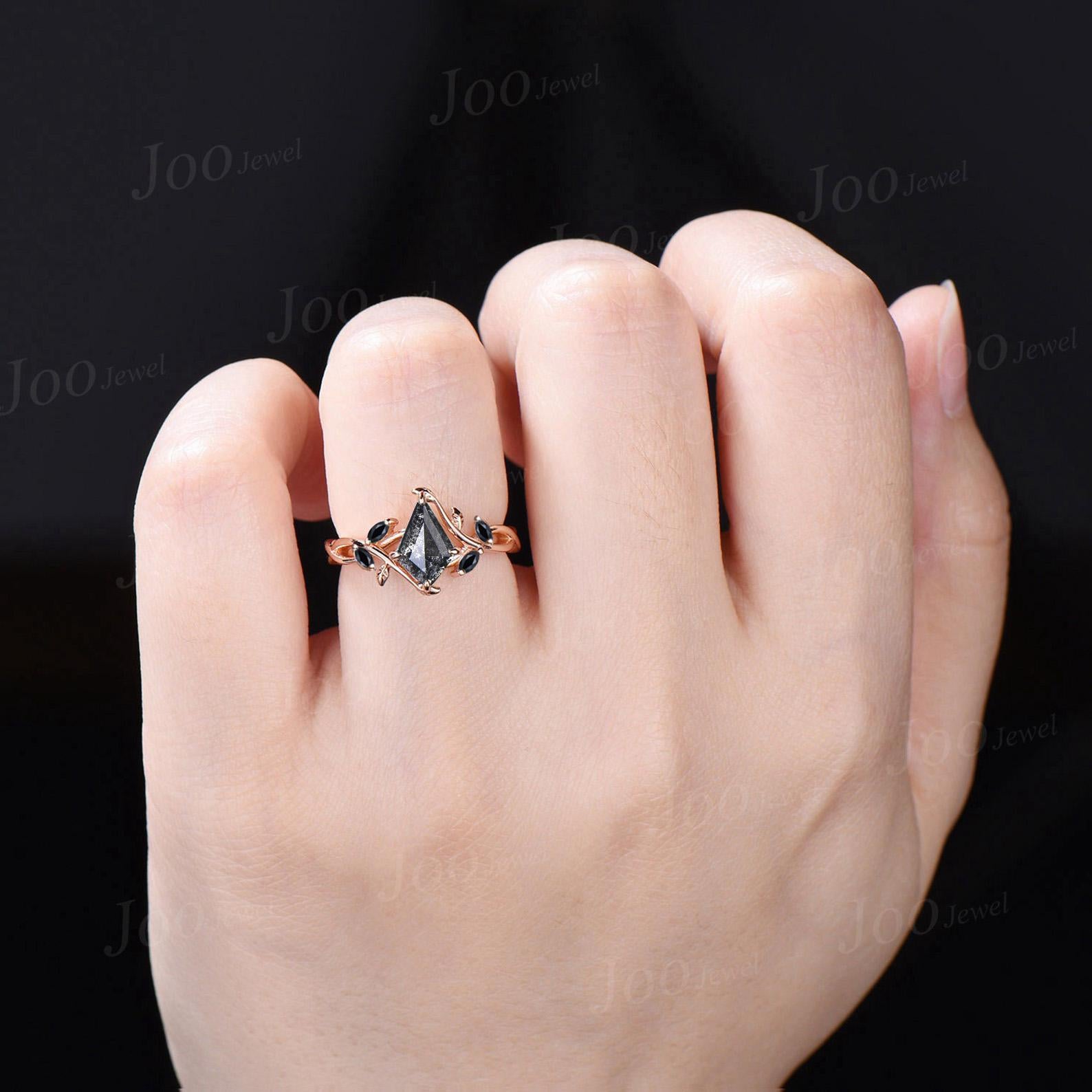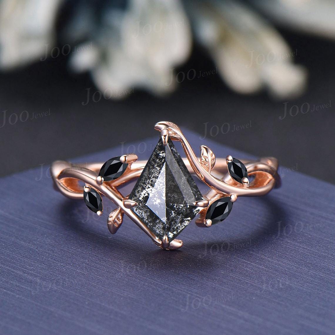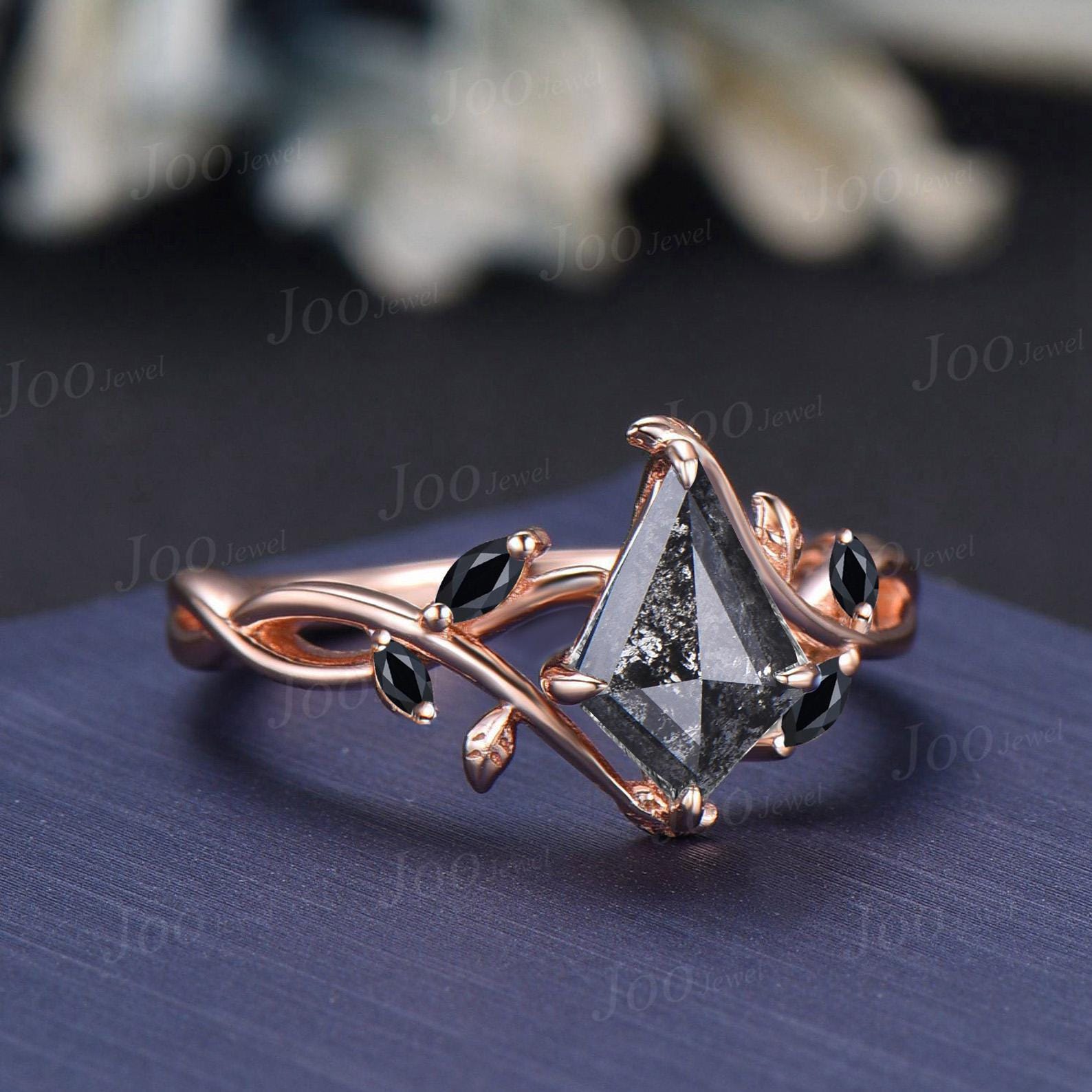 Antique Kite Cut Natural Salt and Pepper Diamond Infinity Engagement Ring 14K Rose Gold Branch Vine Wedding Ring Kite Diamond Bridal Rings