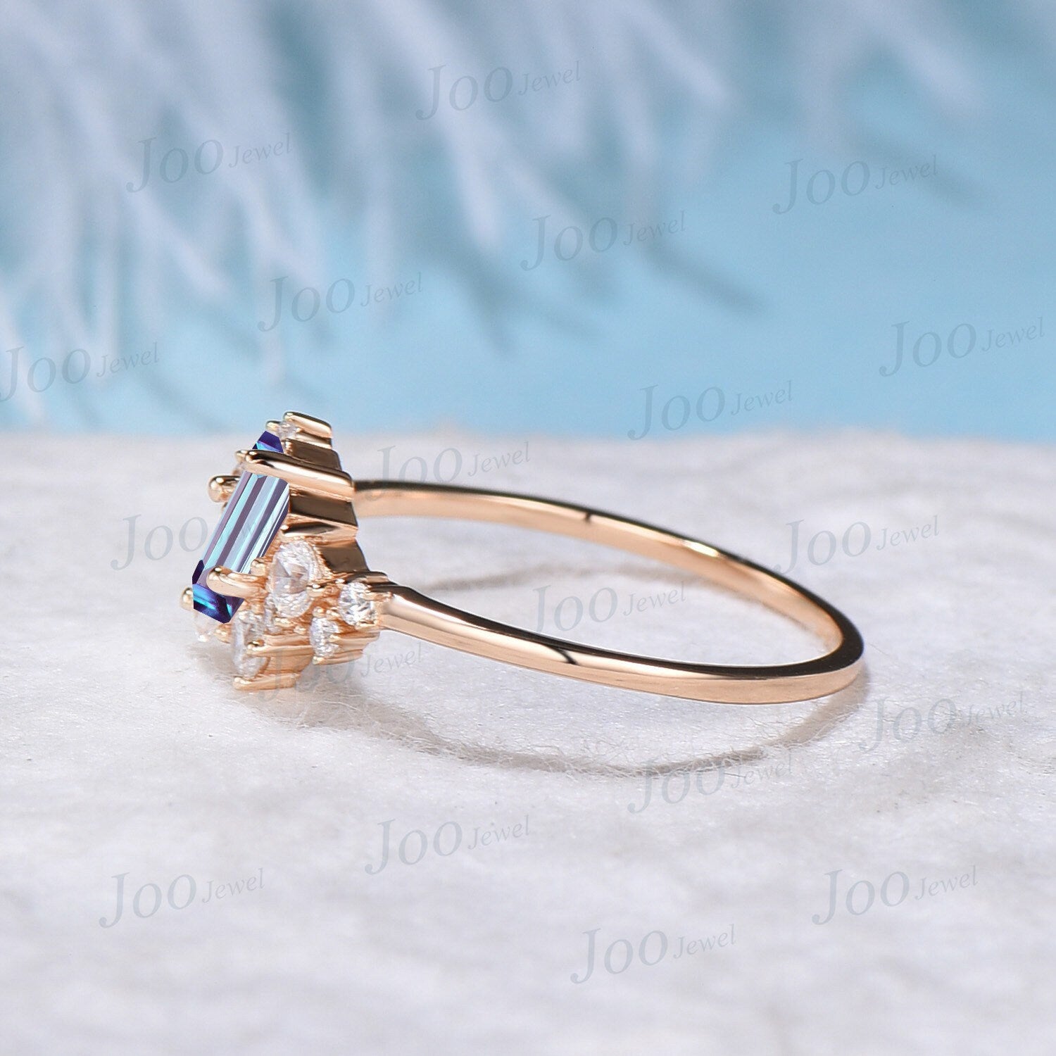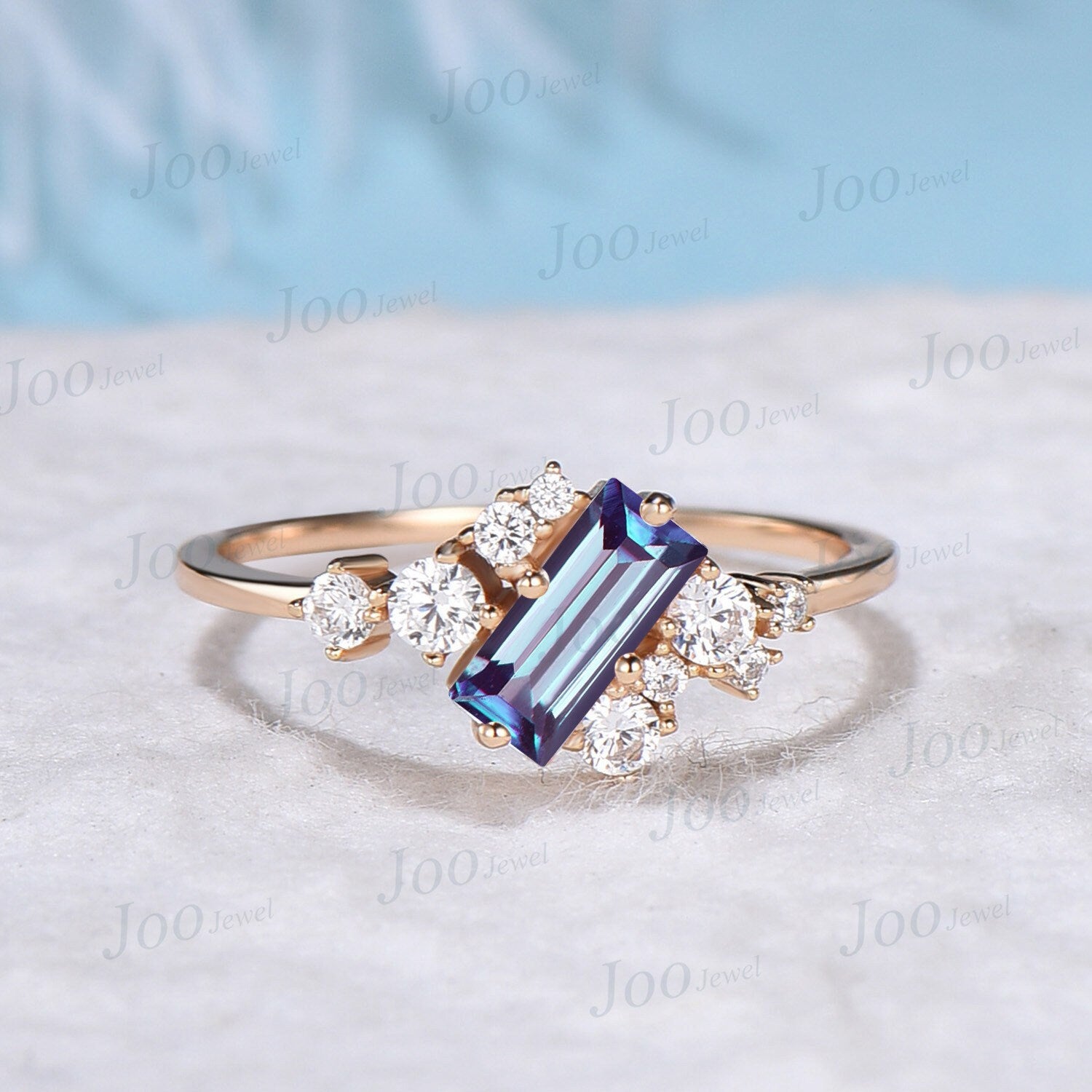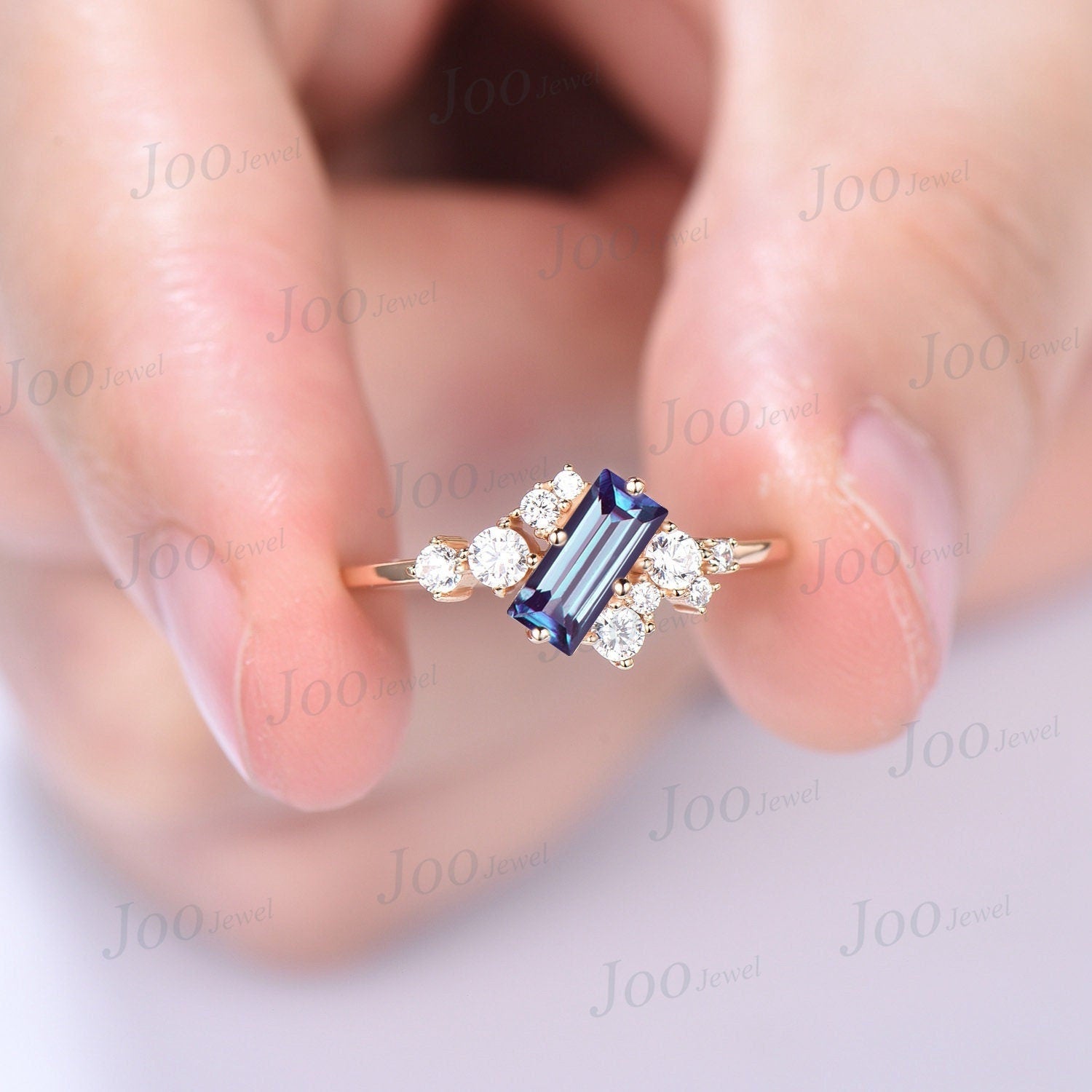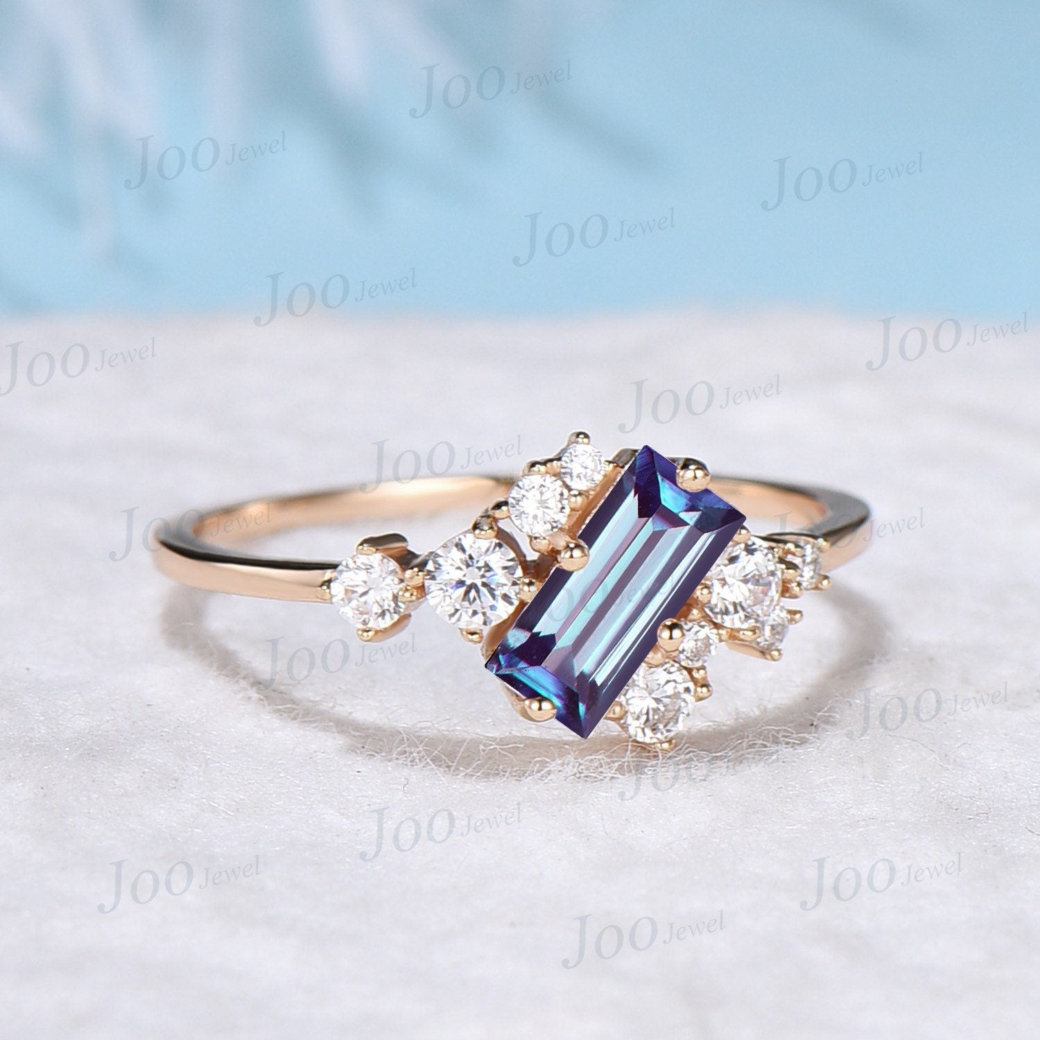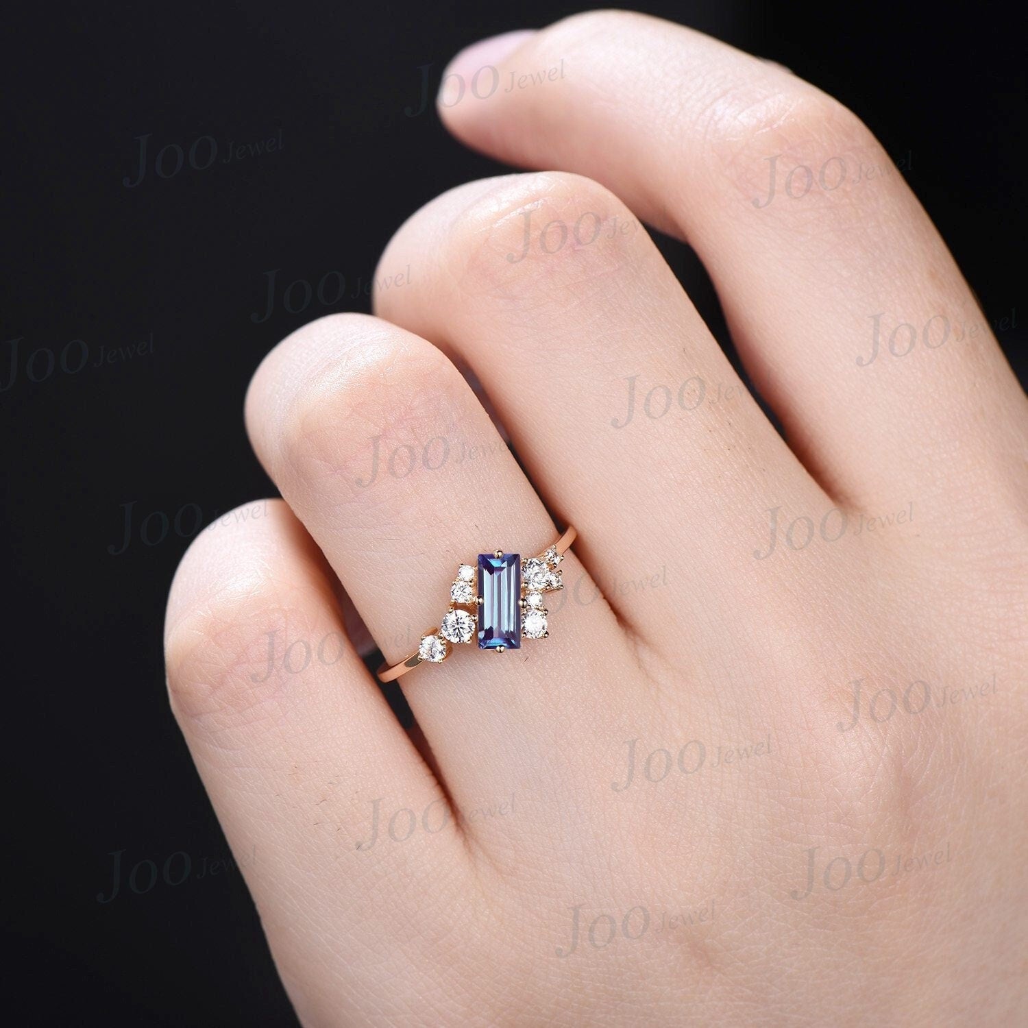 Cluster Alexandrite Engagement Rings Vintage Rose Gold Minimalist BaguetteCut Alexandrite Ring Rectangle Gemstone Moissanite Wedding Ring