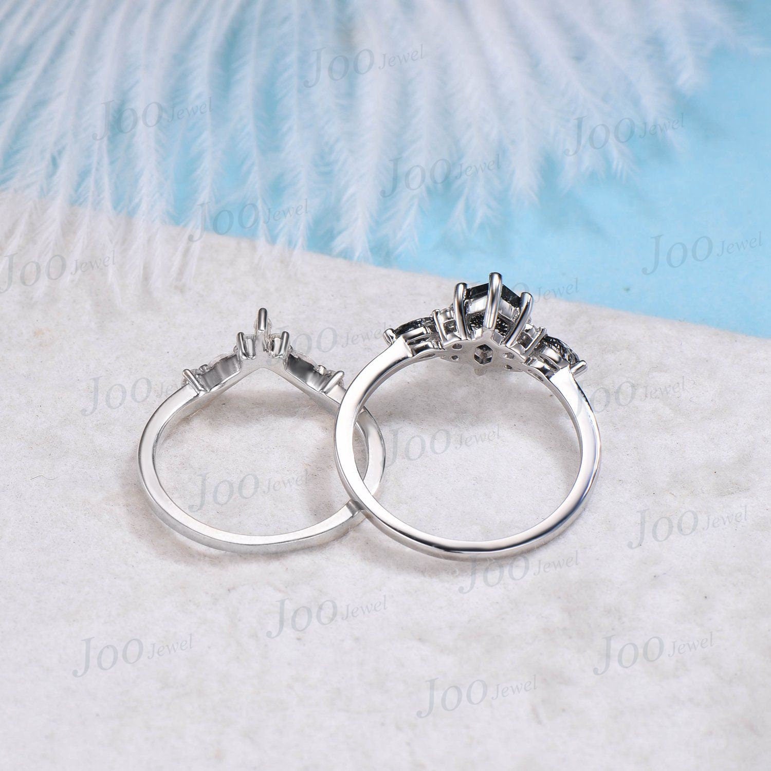 Hexagon Cut Black Rutilated Quartz Engagement Ring Set Vintage Sterling Silver Black Rutile Crystal Ring Unique Wedding/Birthday Gift Women