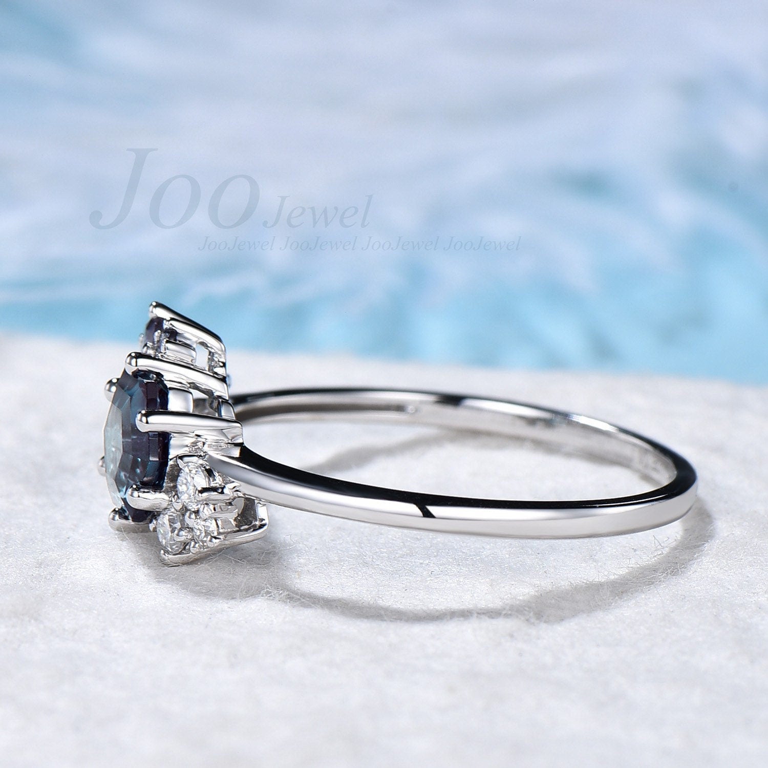 - Side stones: Round cut alexandrites,moissanites or real diamonds.