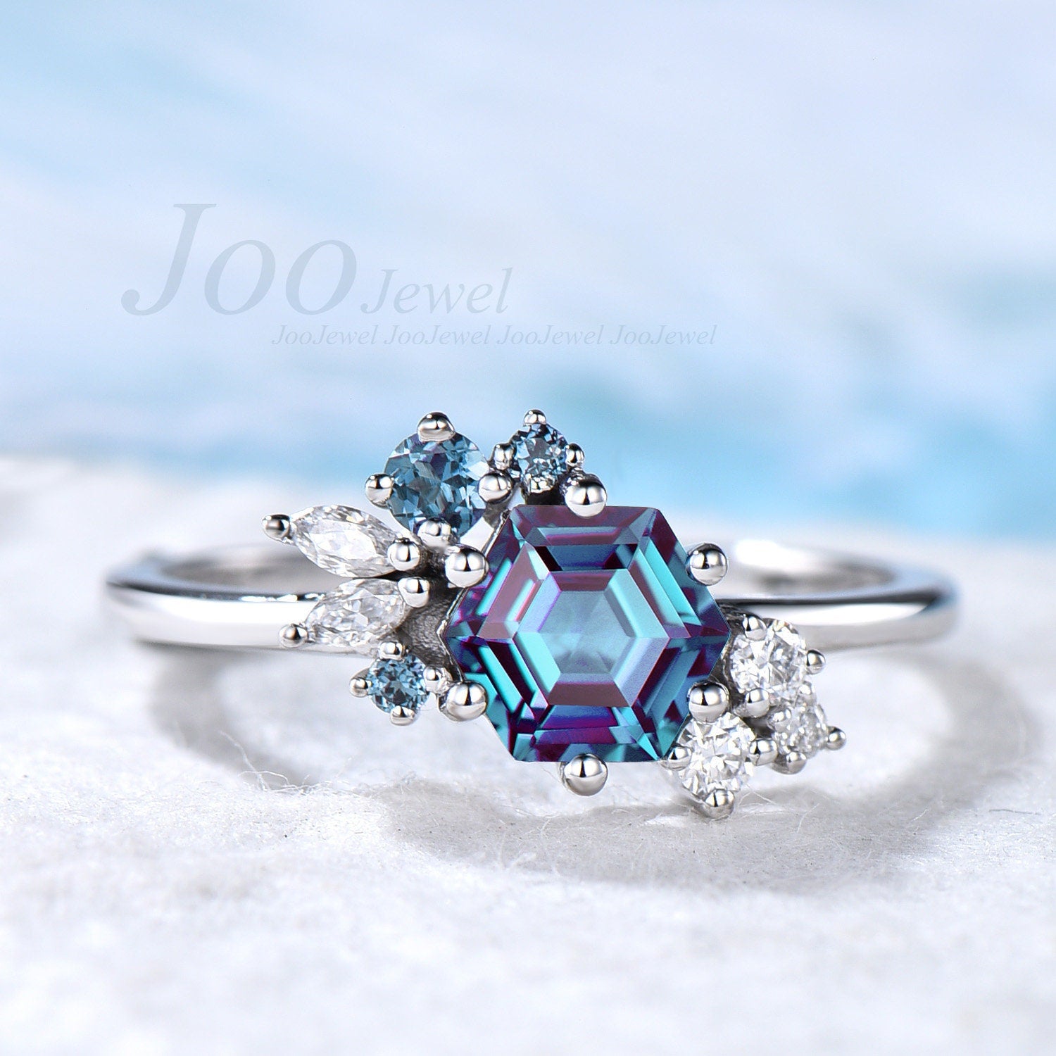 Hexagon Engagement Ring Alexandrite Ring Vintage Unique Cluster Diamond Ring Alexandrite Engagement Rings June Birthstone Wedding Ring Women
