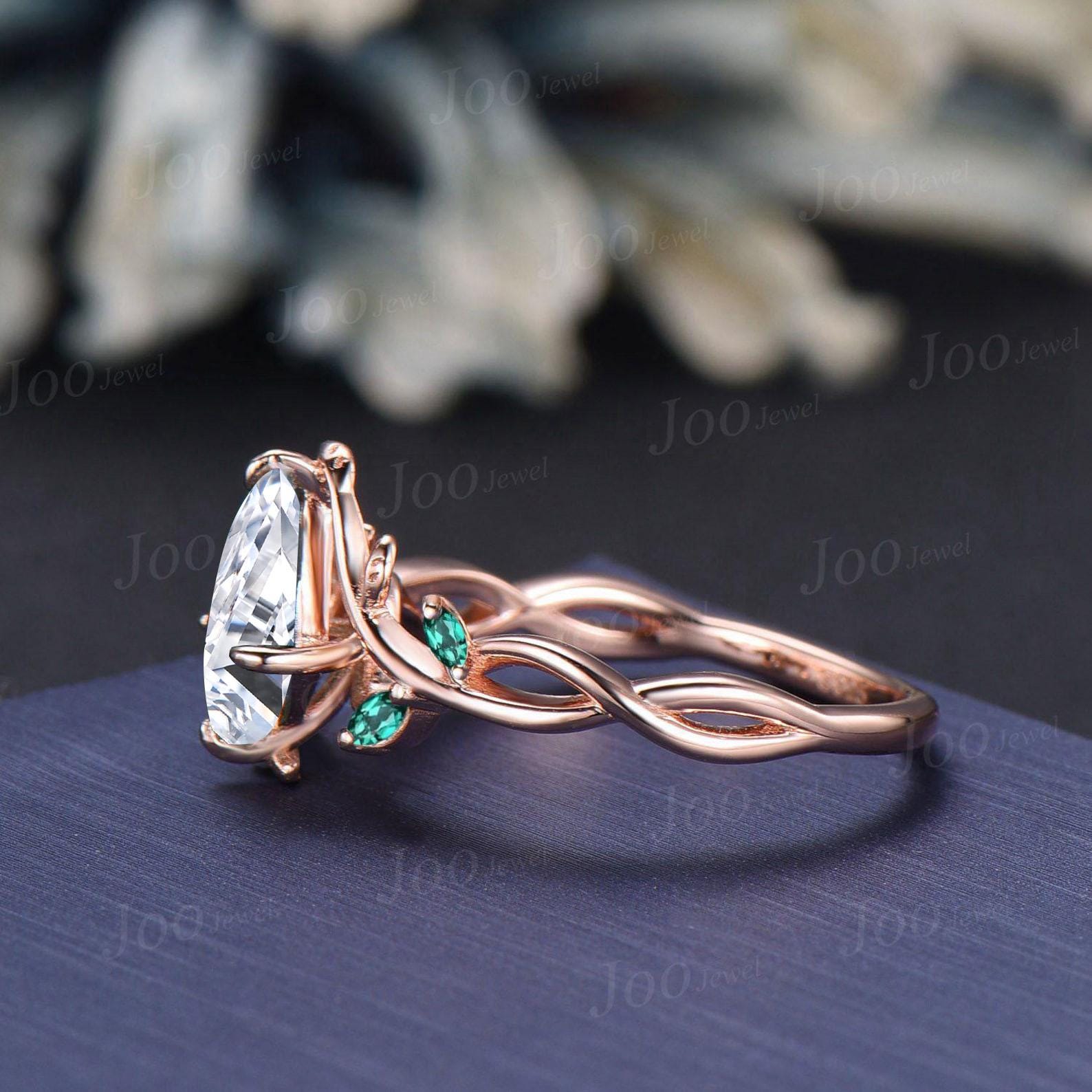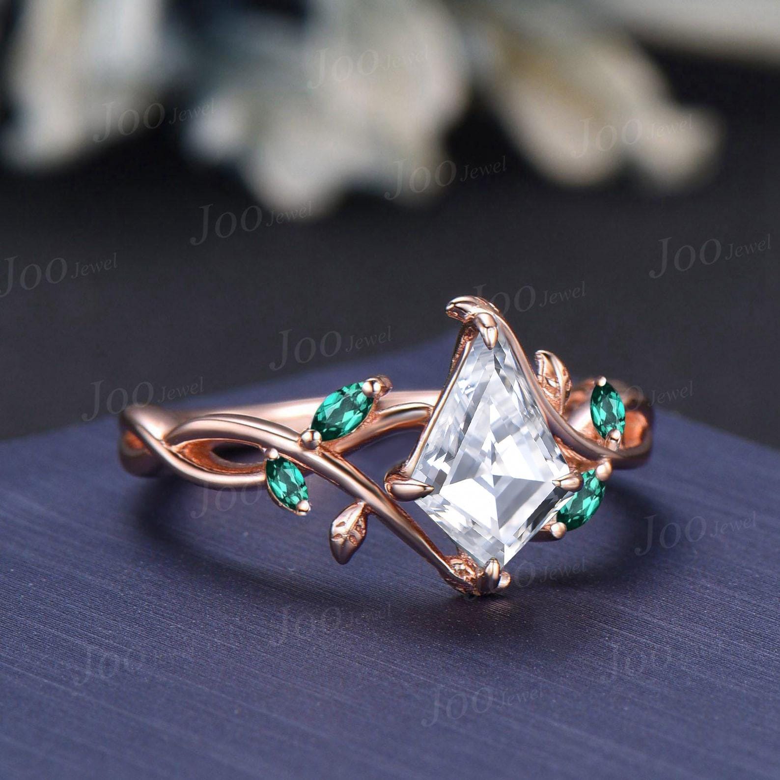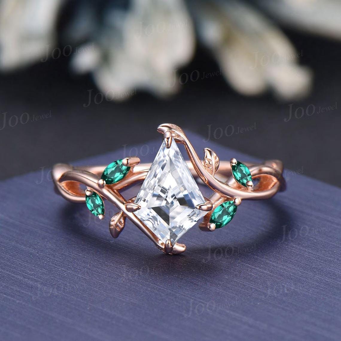 IGI Diamond Engagement Ring 14K Rose Gold Kite Cut Diamond with Emerald Infinity Leaf Wedding Rings for Women Custom VVS D Diamond Ring