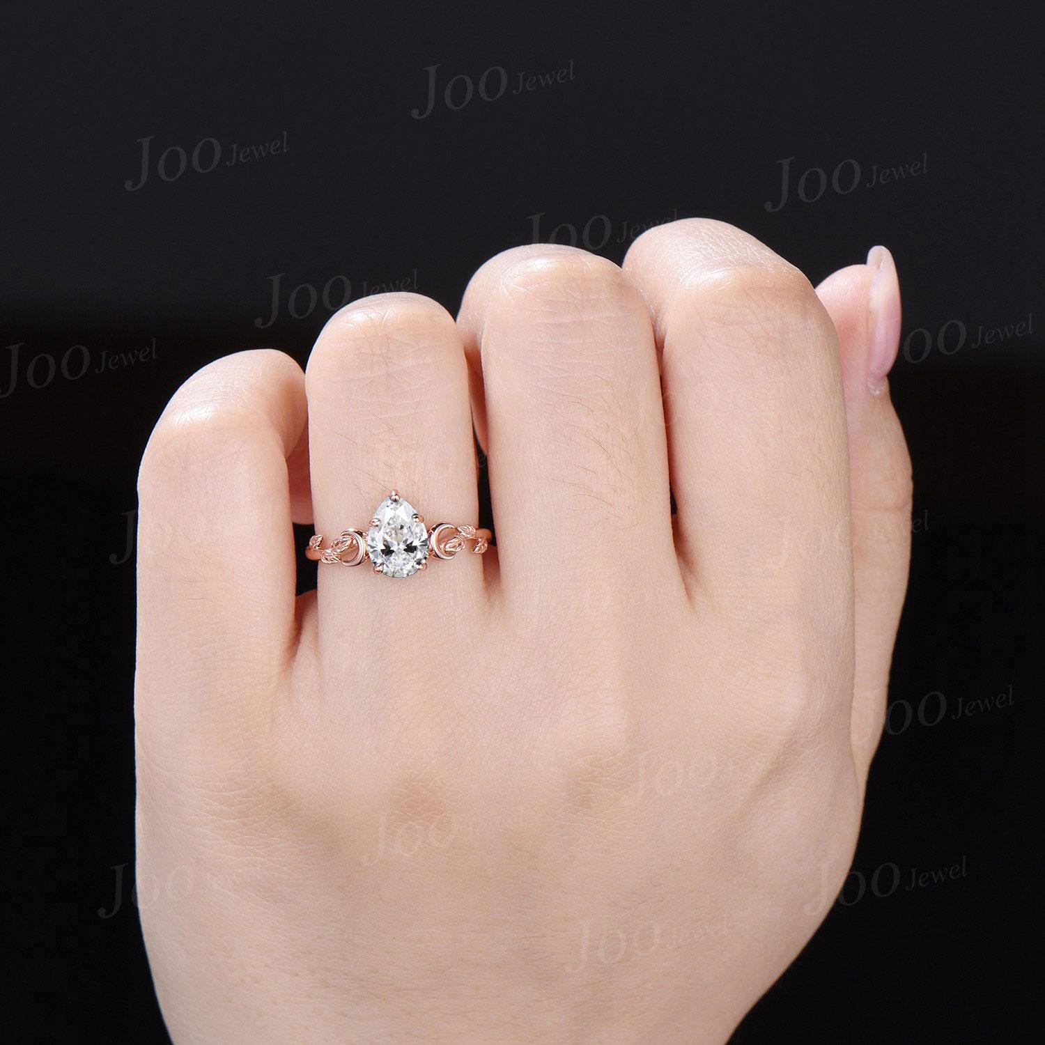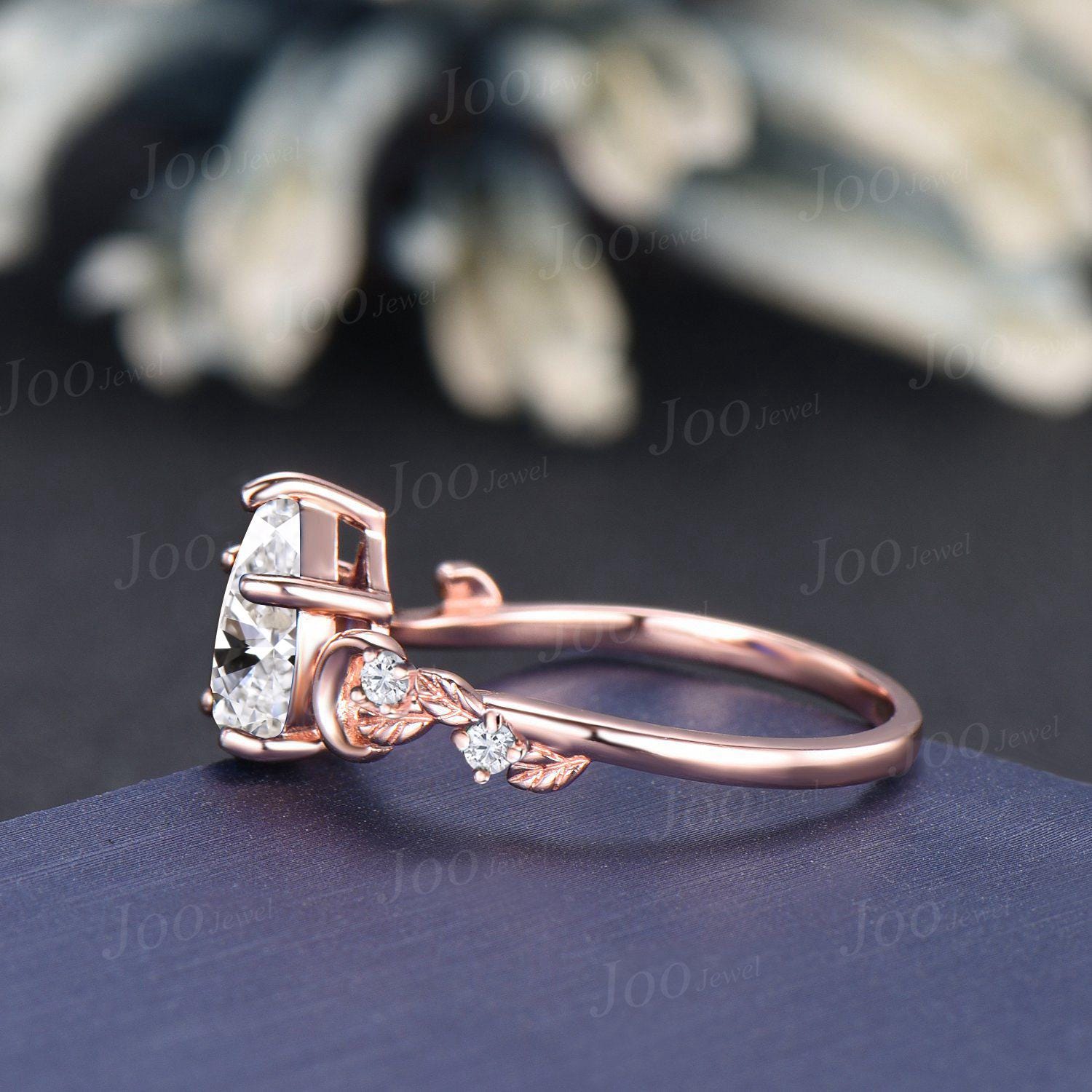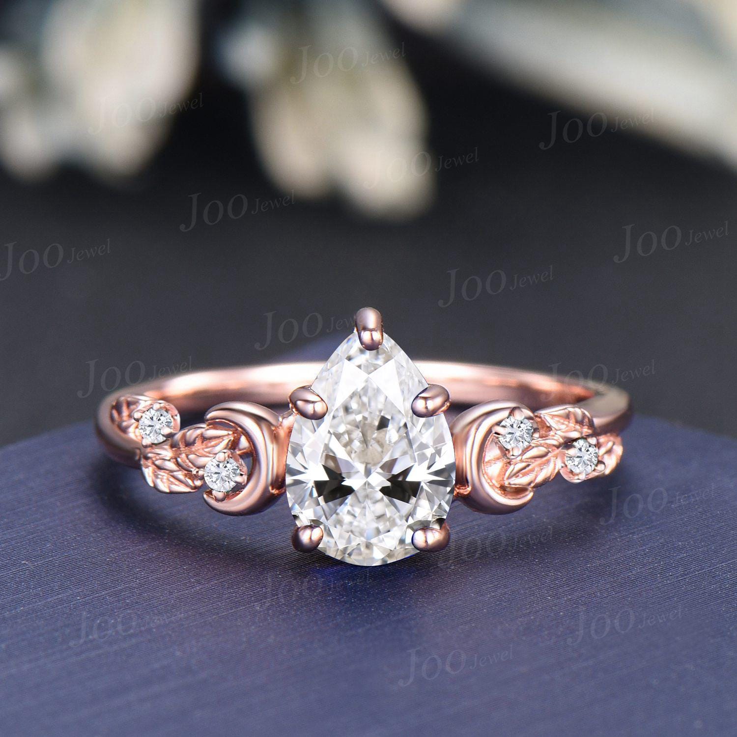 IGI Diamond Engagement Ring 14K Rose Gold Moon Leaf Wedding Rings for Women Teardrop Cut Lab Grown Diamond Solitaire Ring VVS D Diamond Ring