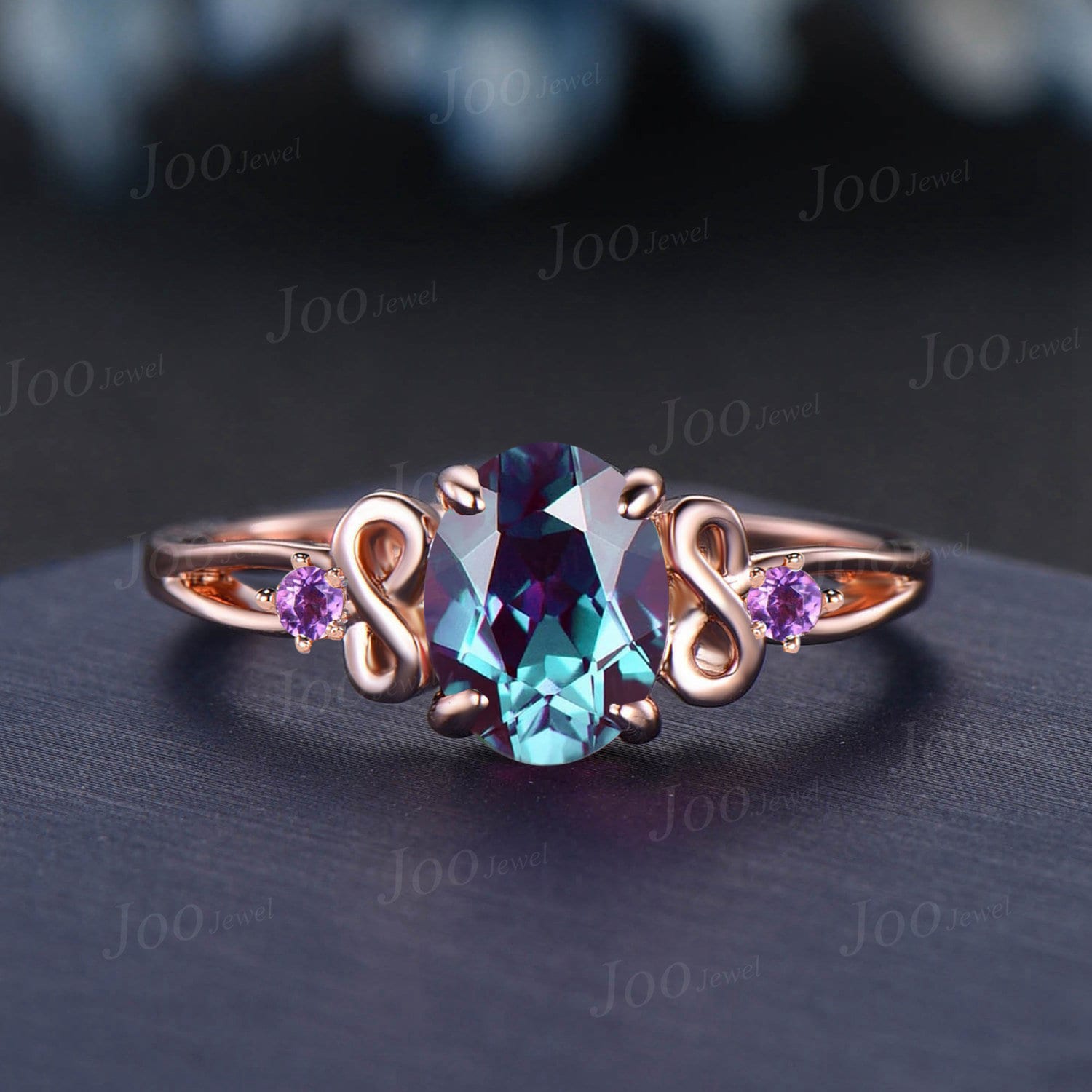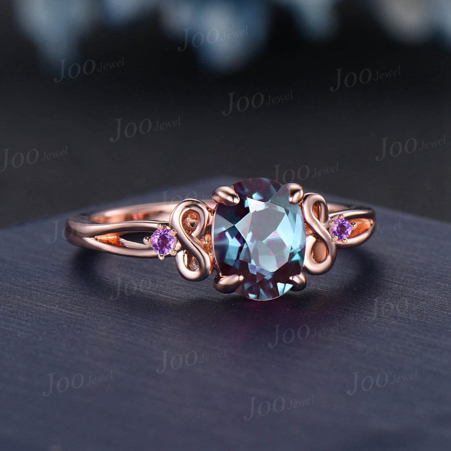 Infinity Twist Color-Change Alexandrite Amethyst Endless Love Wedding Ring 1.5ct Oval Cut Alexandrite Engagement Ring Handmade Proposal Gift