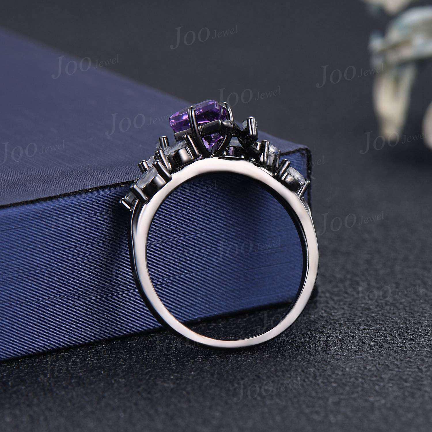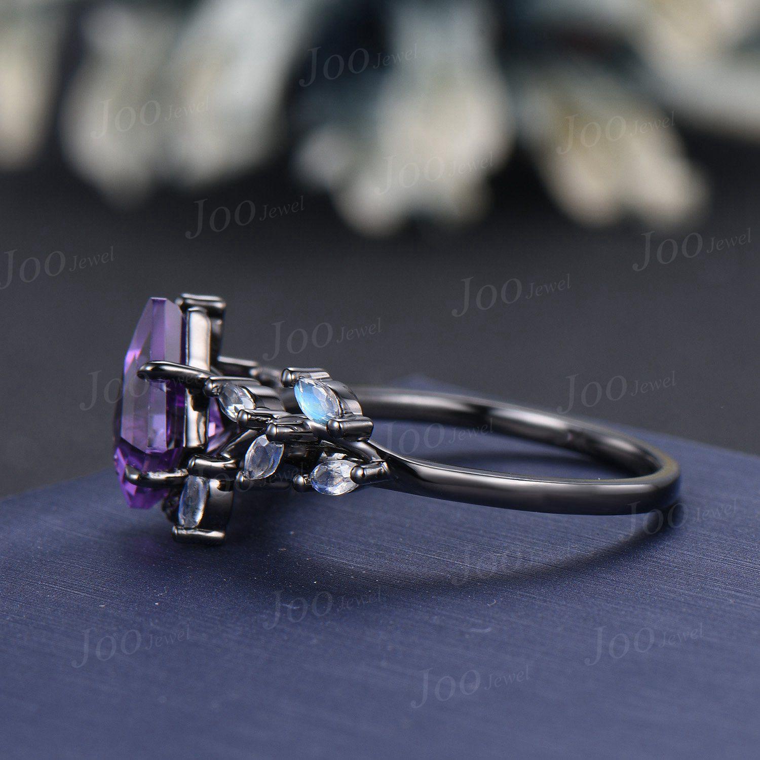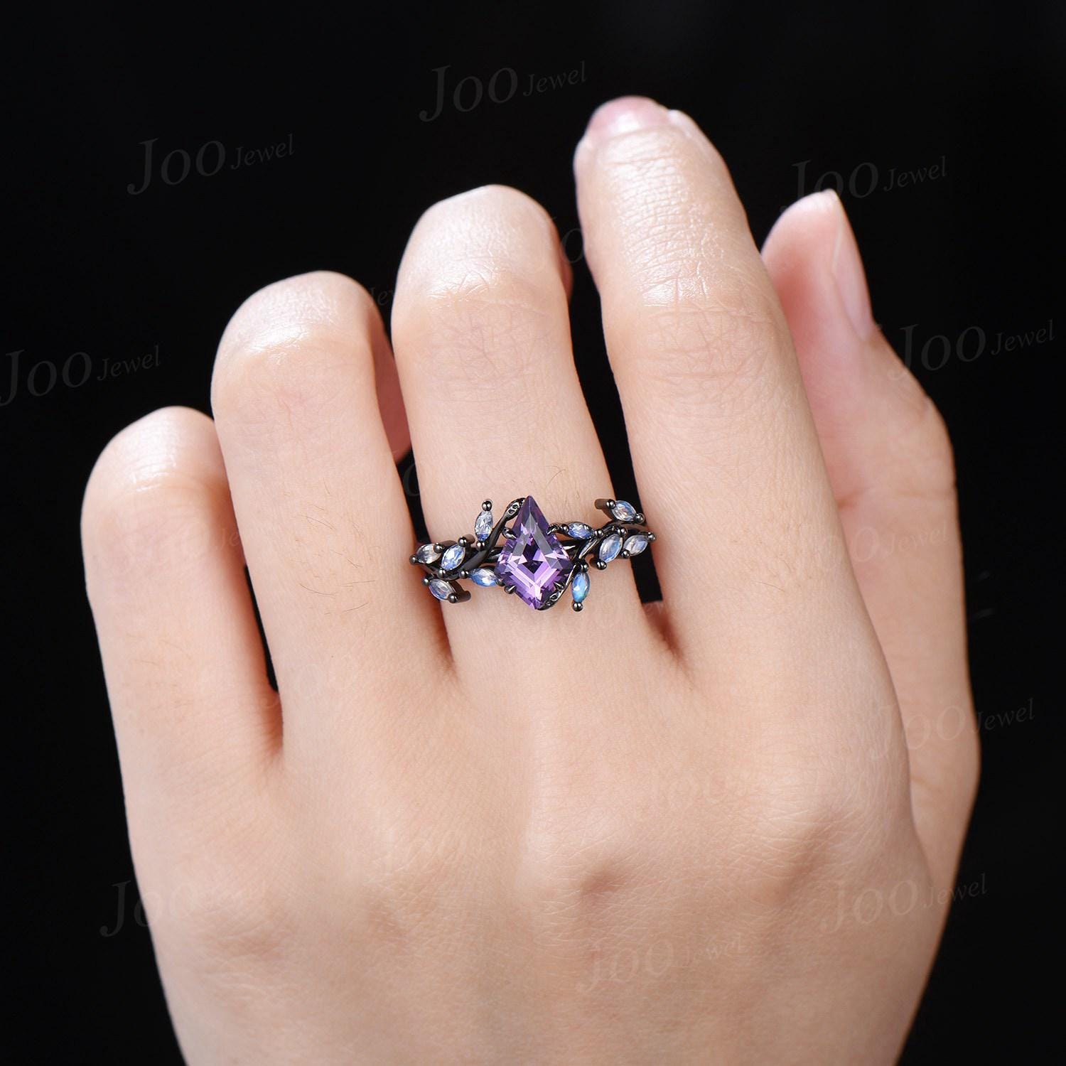 Kite Cut Natural Amethyst Wedding Ring Vintage Black Promise Ring Cluster Moonstone Engagement Ring Custom February Birthstone Gifts Women