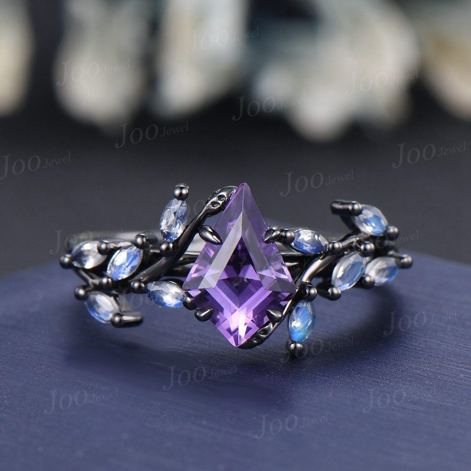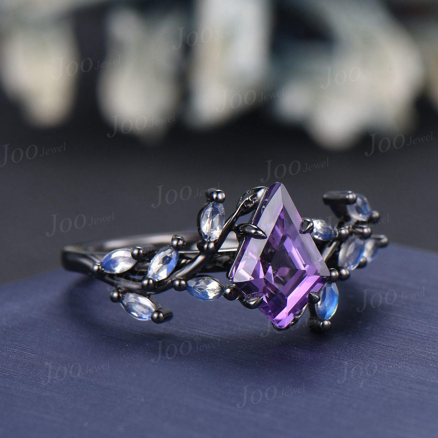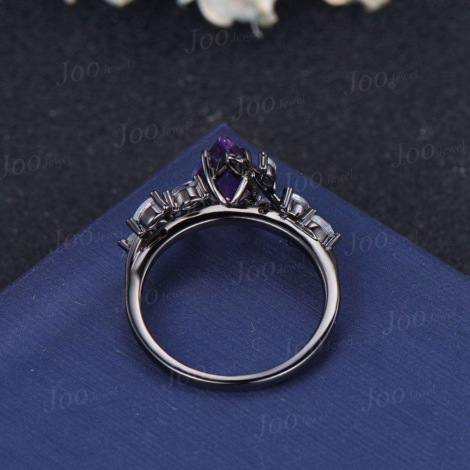 Kite Cut Natural Amethyst Wedding Ring Vintage Black Promise Ring Cluster Moonstone Engagement Ring Custom February Birthstone Gifts Women