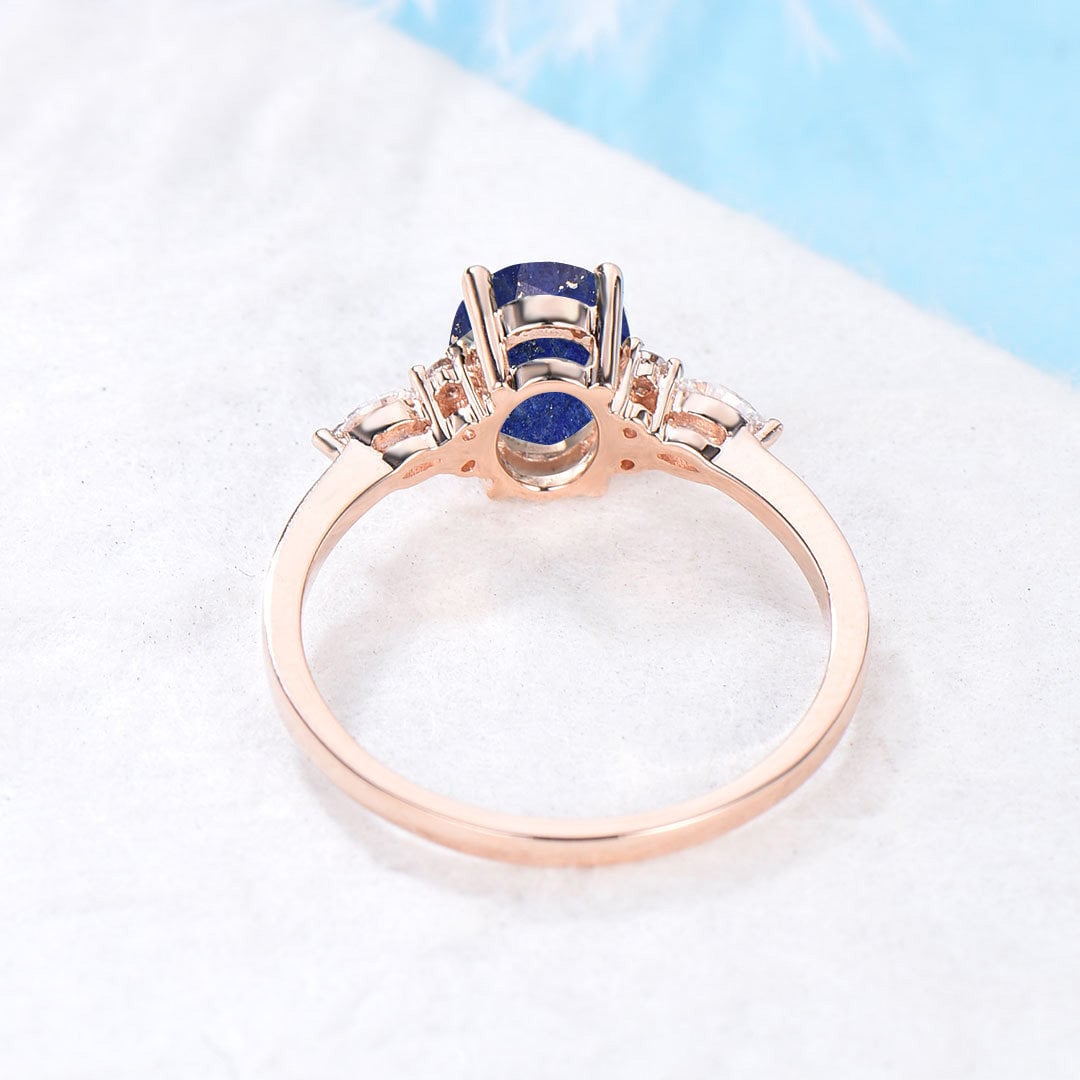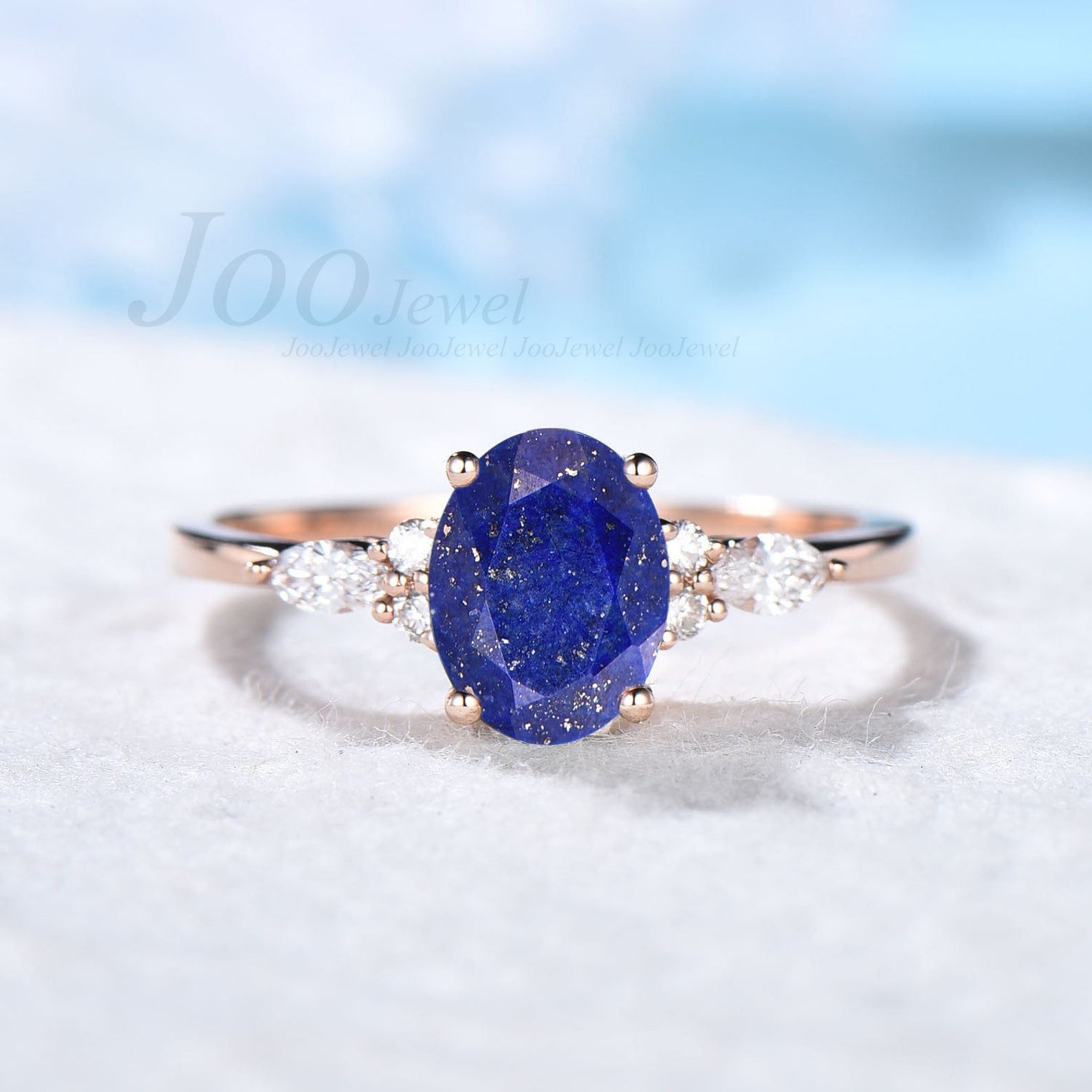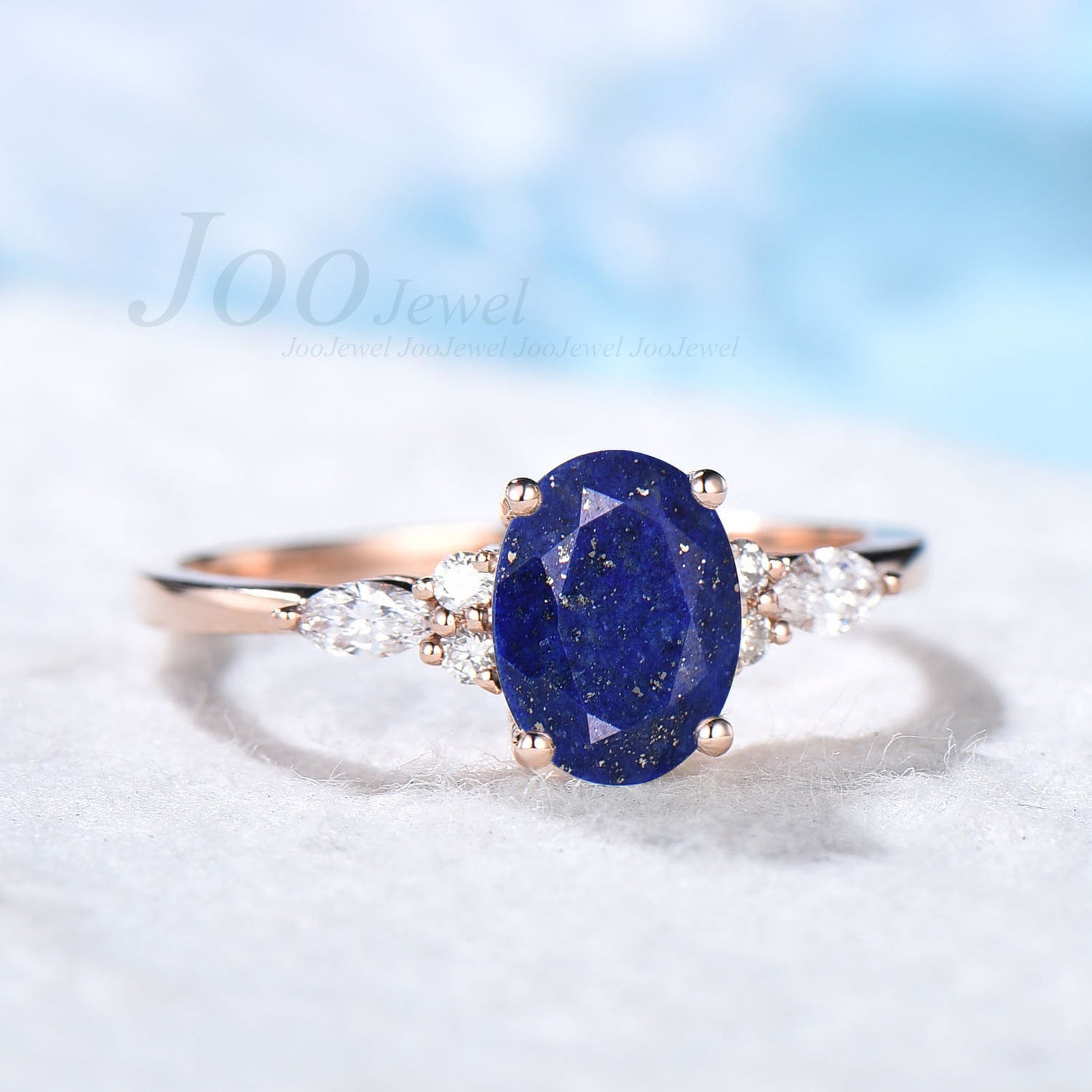 Oval Natural Lapis Lazuli Engagement Ring Women Sterling Silver Vintage Lapis Gold Wedding Ring Blue Gemstone Ring Antique Gift for Mom