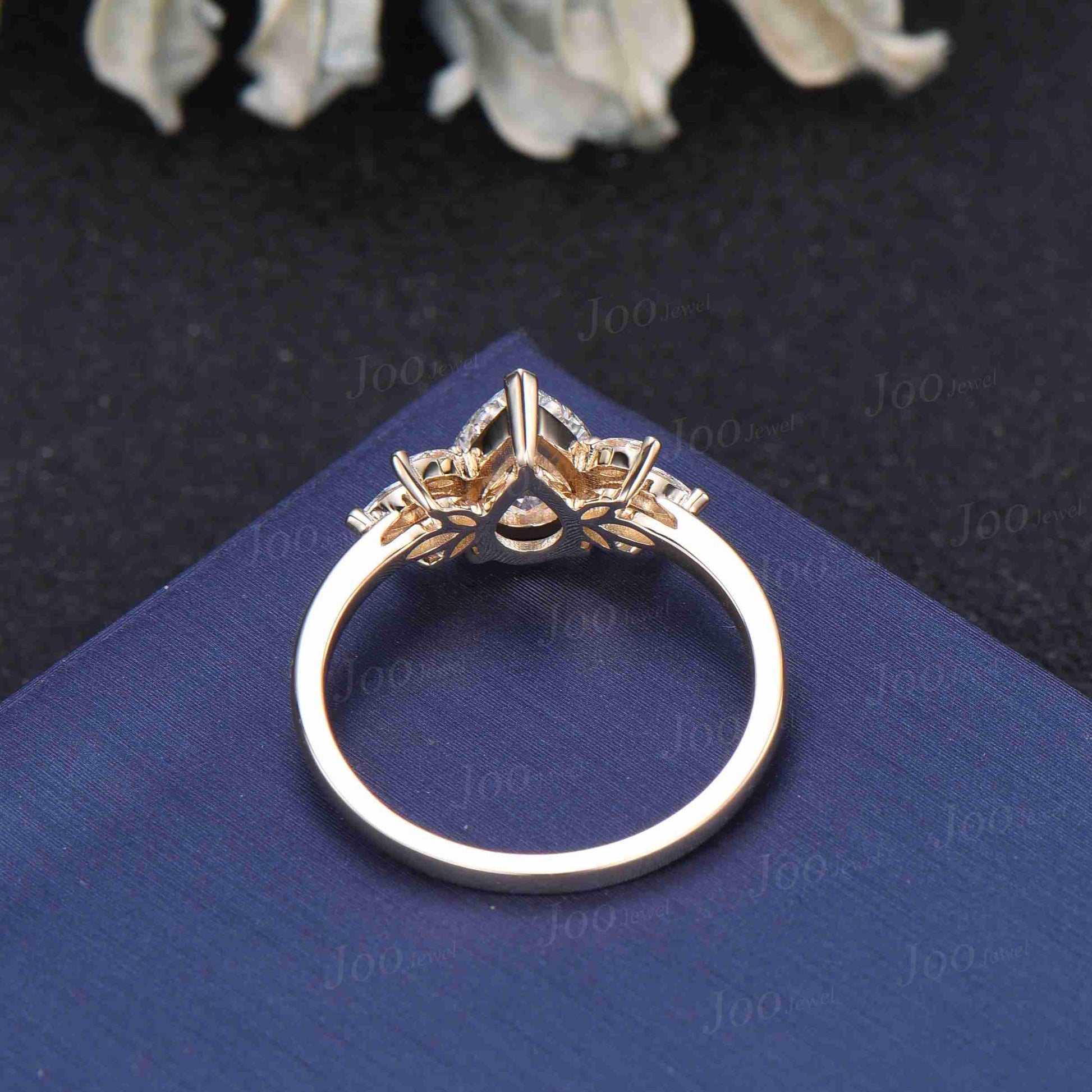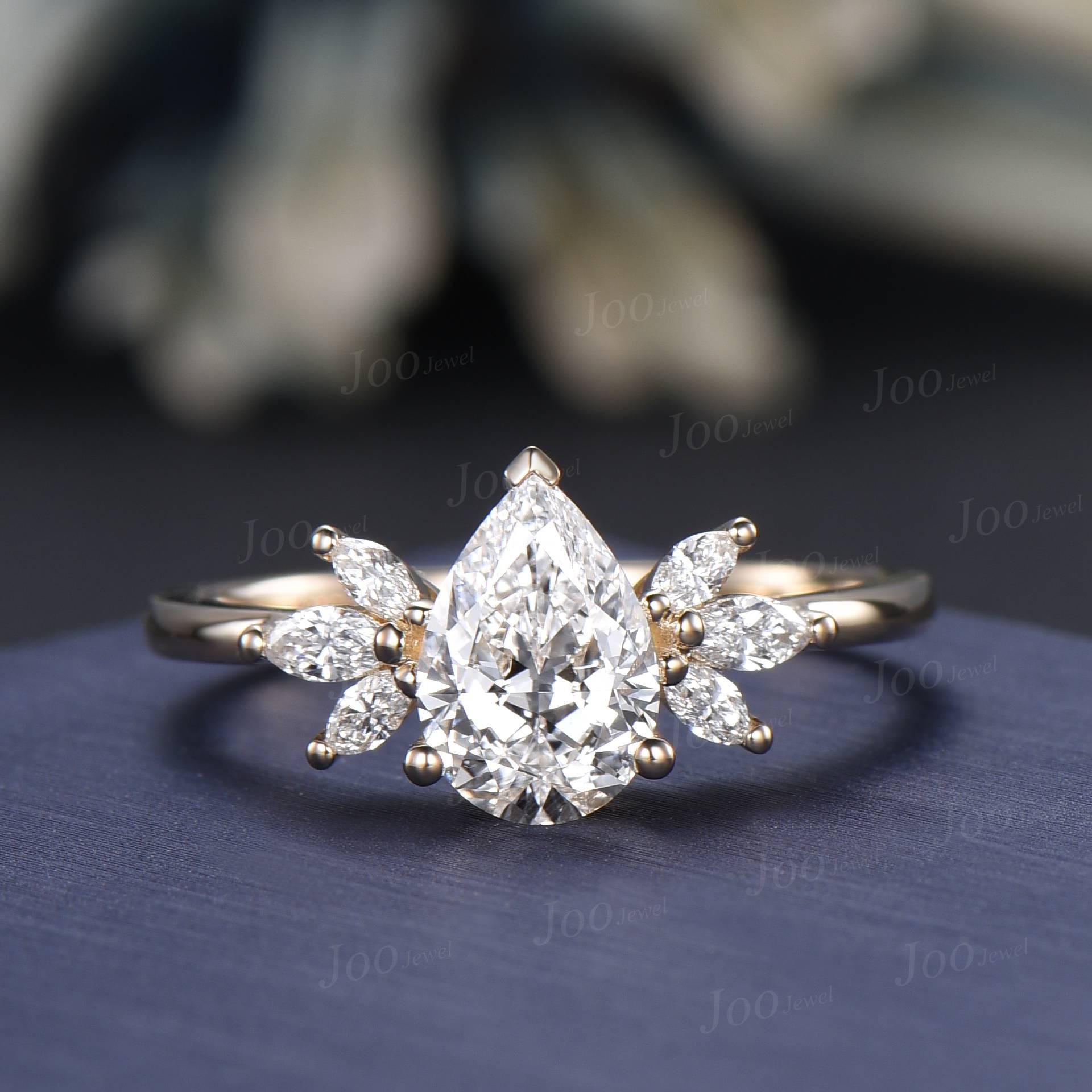 Pear Cut Lab Grown Diamond Engagement Ring With IGI Certificate 14K Yellow Gold Teardrop Diamond Ring Cluster Pear Wedding Bridal Ring Women