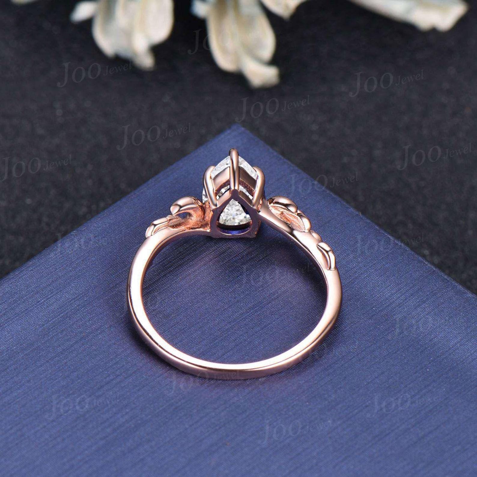 Pear Cut Opal Wedding Ring Moissanite Halo Opal Engagement Ring Leaf Moon Design White Opal Pearl Bridal Ring Unique Birthday Gifts for Her