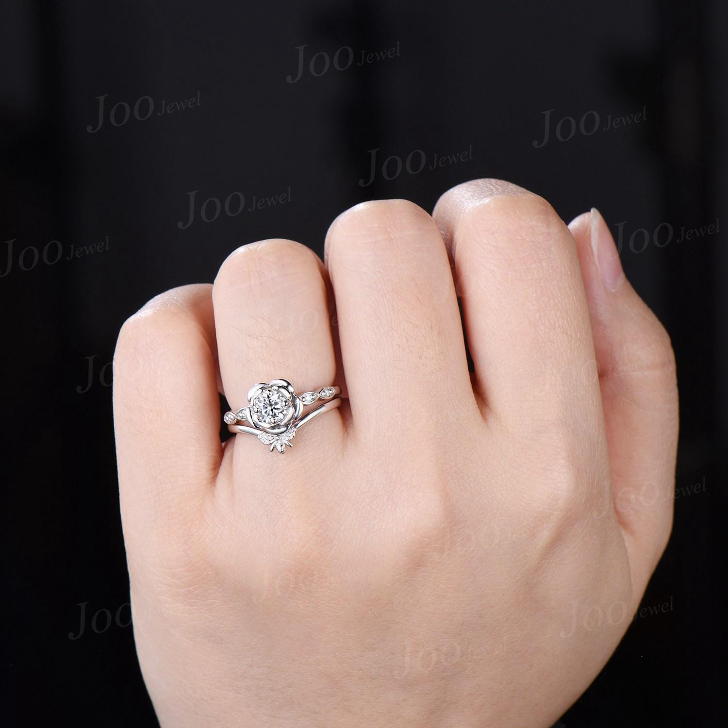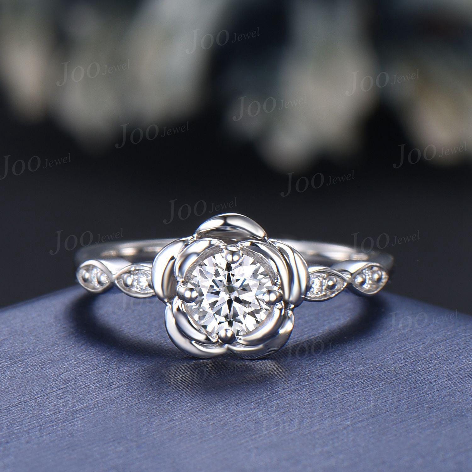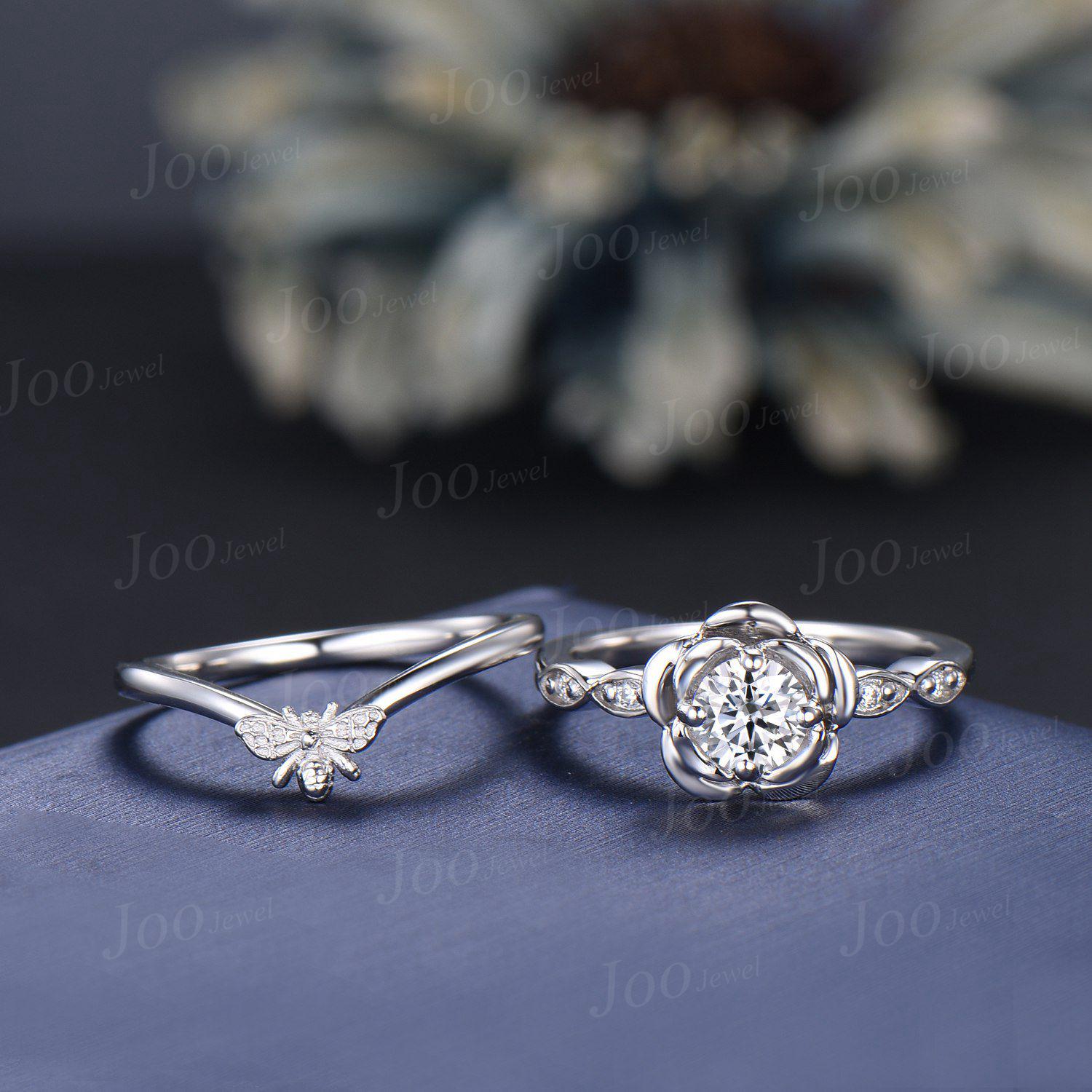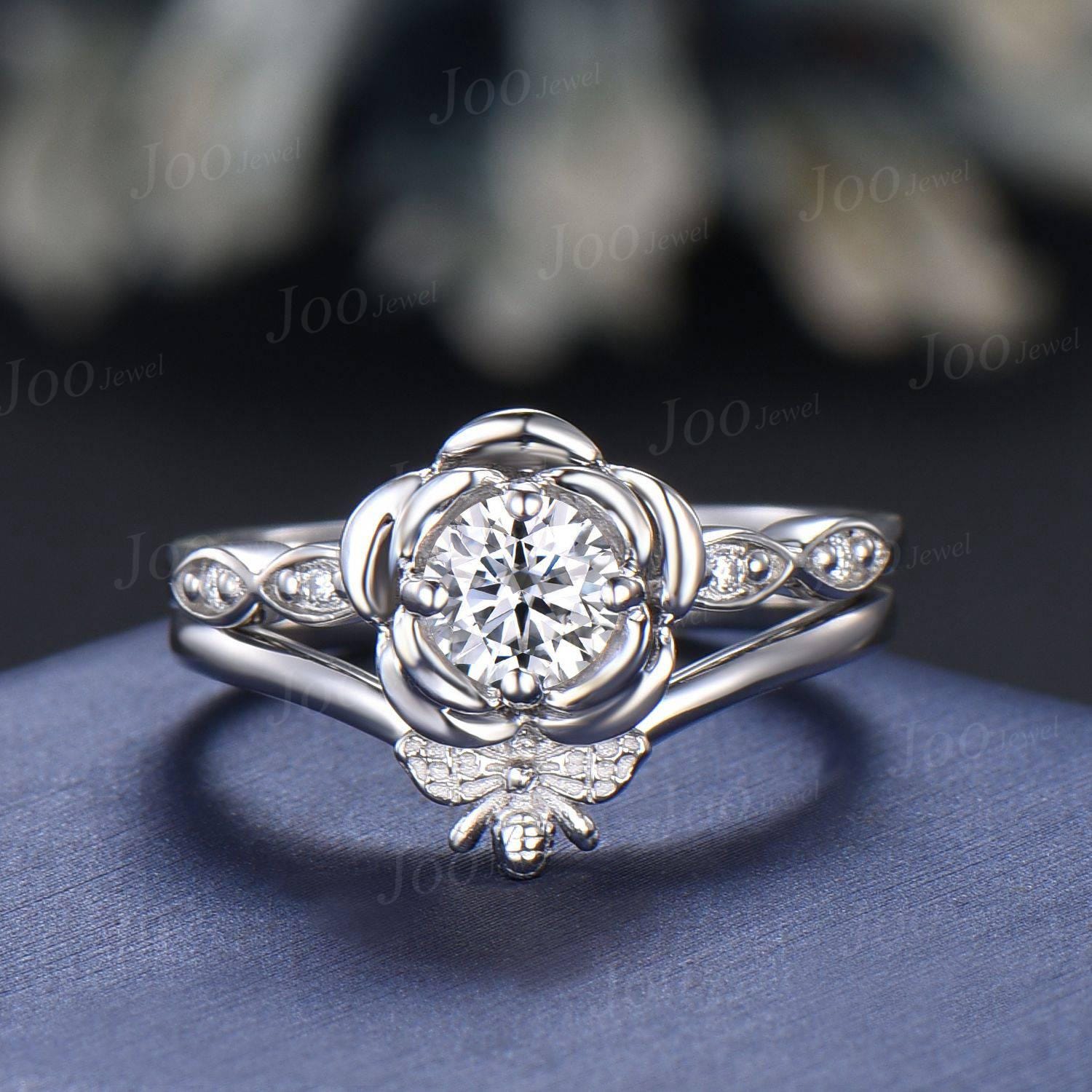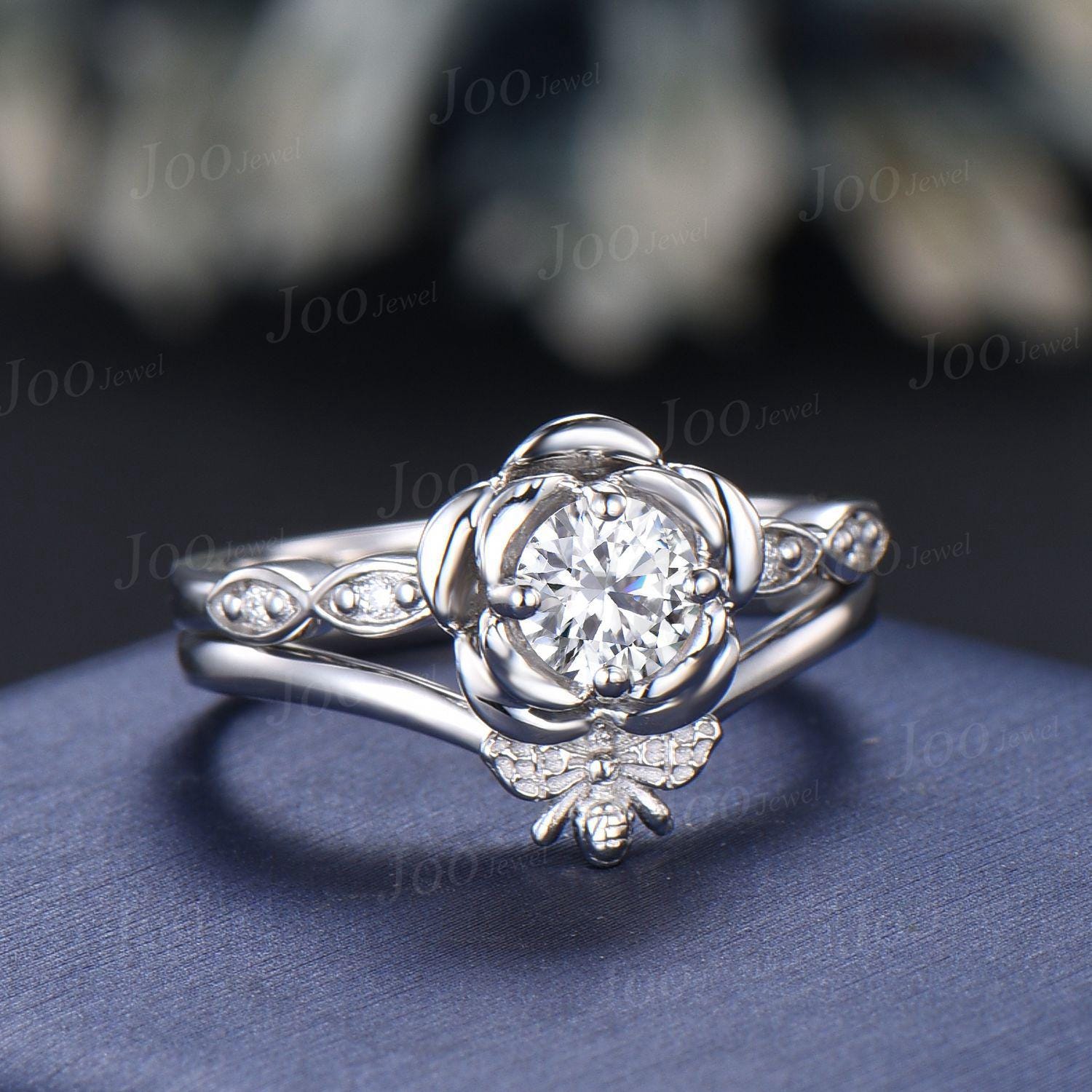 Rose Flower Bee Bridal Ring Round Cut Lab-Grown Diamond Floral Engagement Ring with IGI Certificate Unique Spring Collection Wedding Ideas