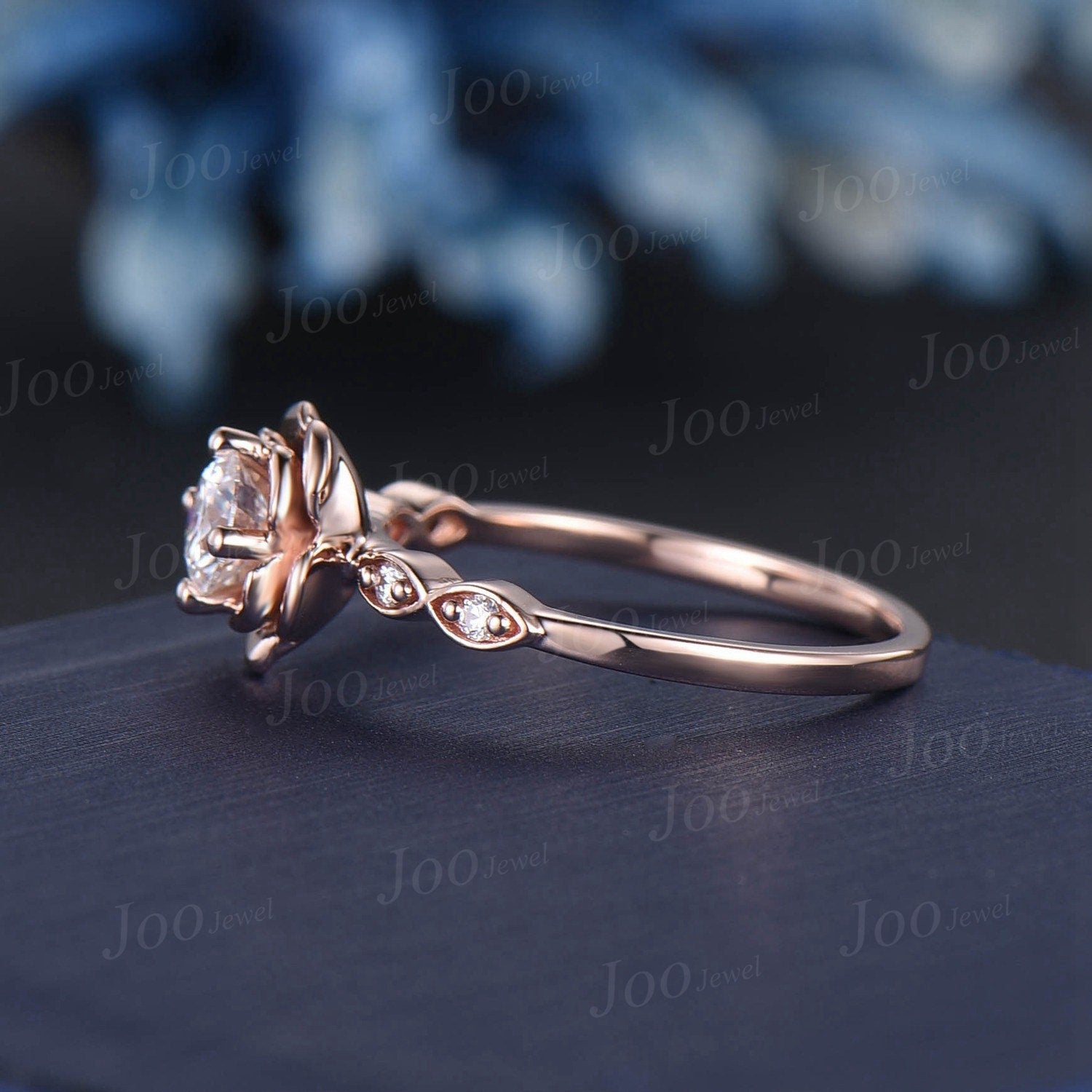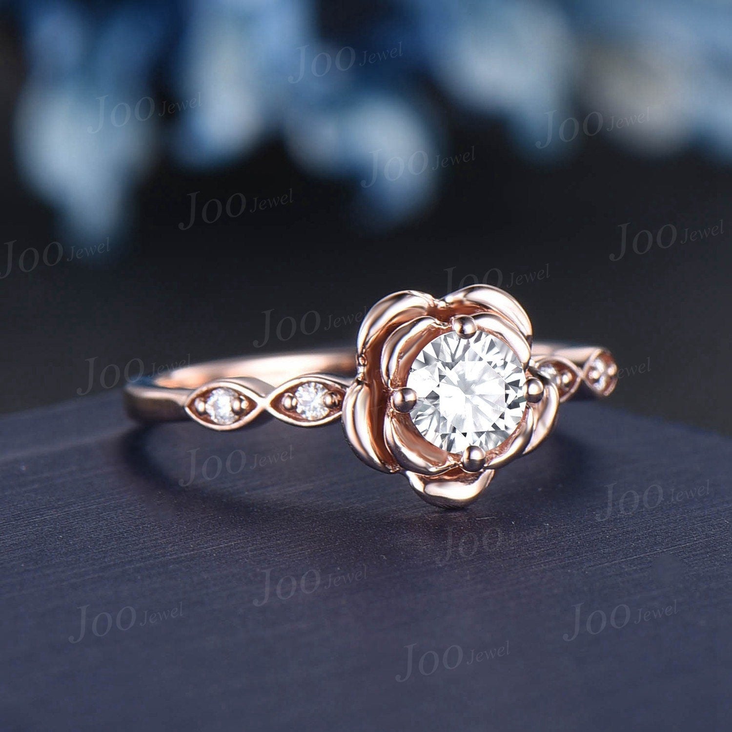 Rose Flower Brilliant Diamond Engagement Ring 0.5CTW Round Floral Lab Grown Diamond Wedding Ring 18K Rose Gold Diamond Bridal Ring with IGI Certificate