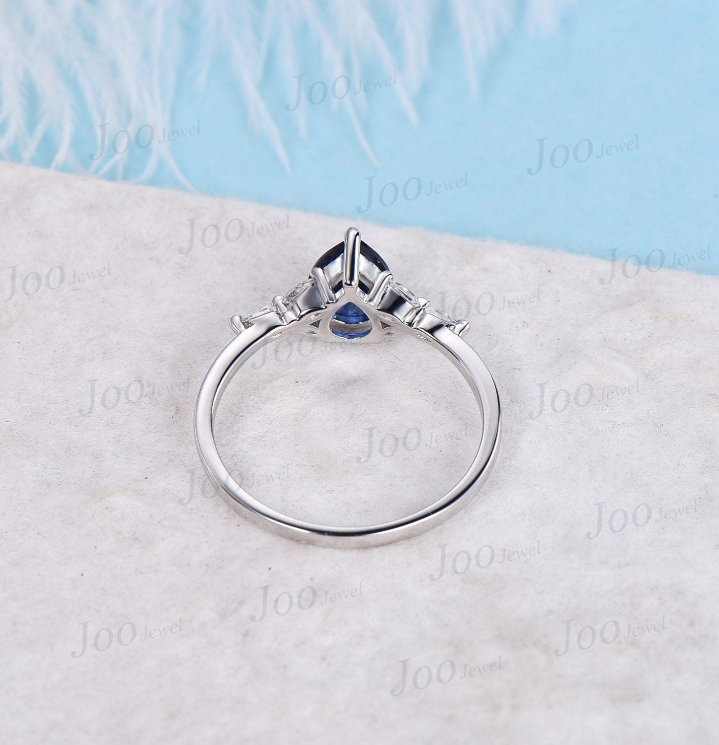 Sterling Silver Blue Sapphire Engagement Rings 1.25ct Vintage Blue Gemstone Teardrop Ring September Birthstone Birthday Anniversary Gift Her