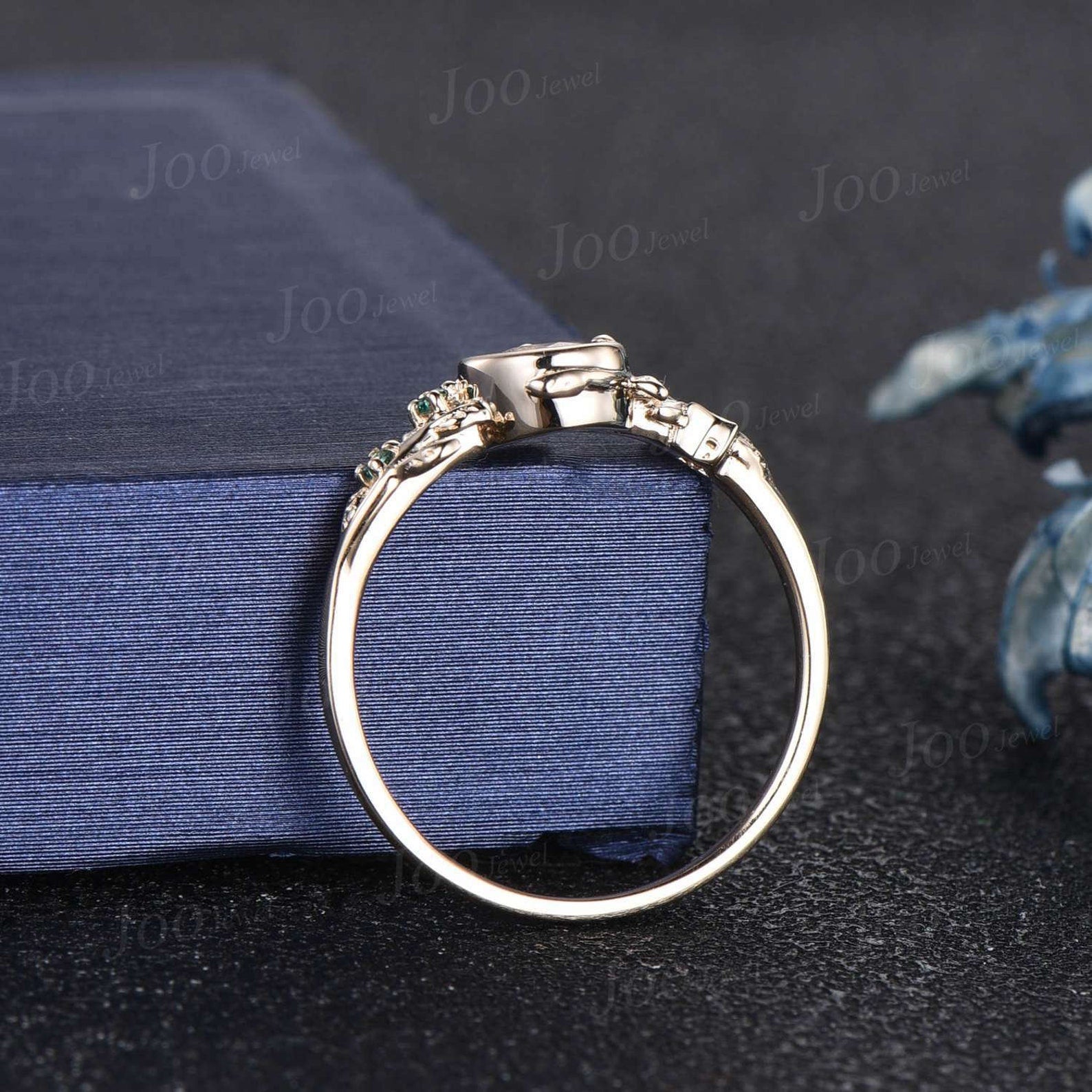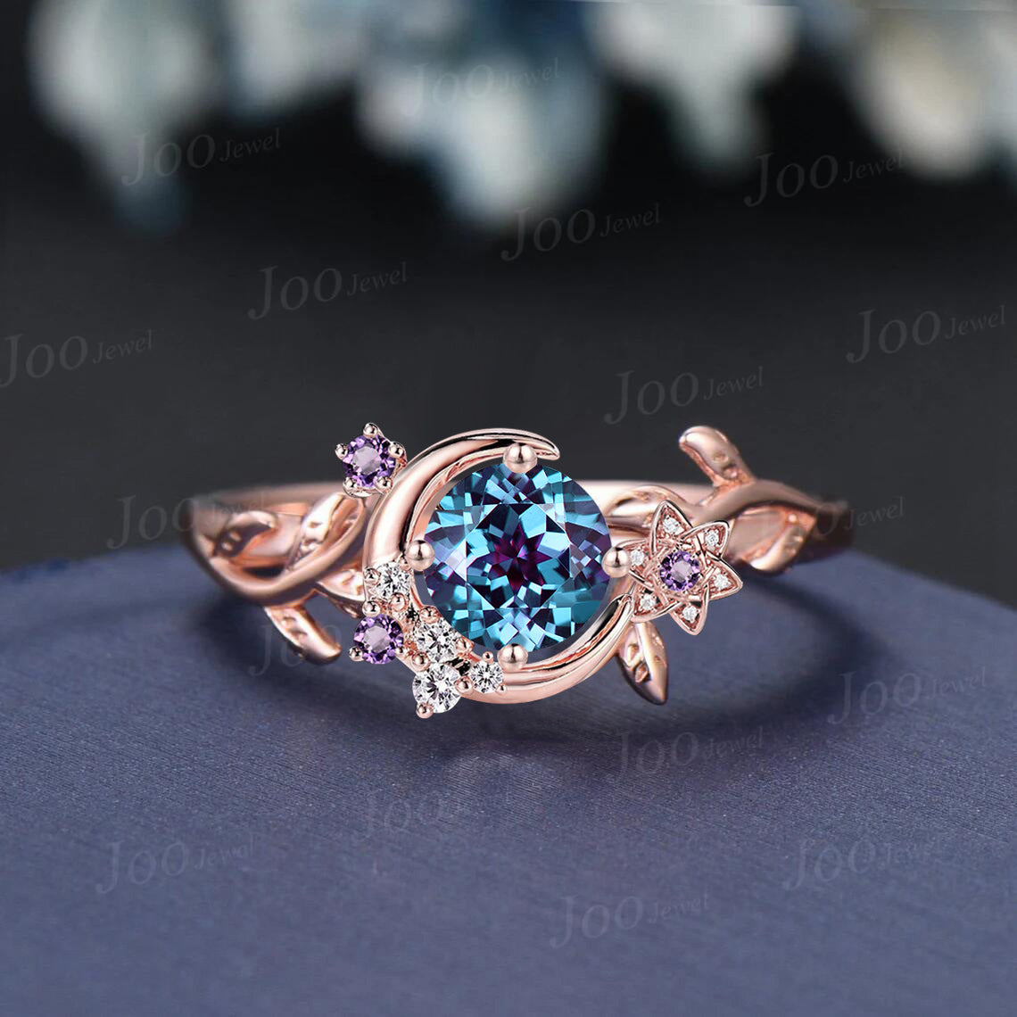 Color-Change Alexandrite Ring Vintage Cluster Amethyst Ring Rose Gold Leaf Moon Engagement Ring Star Flower Moissanite Bridal Ring For Women