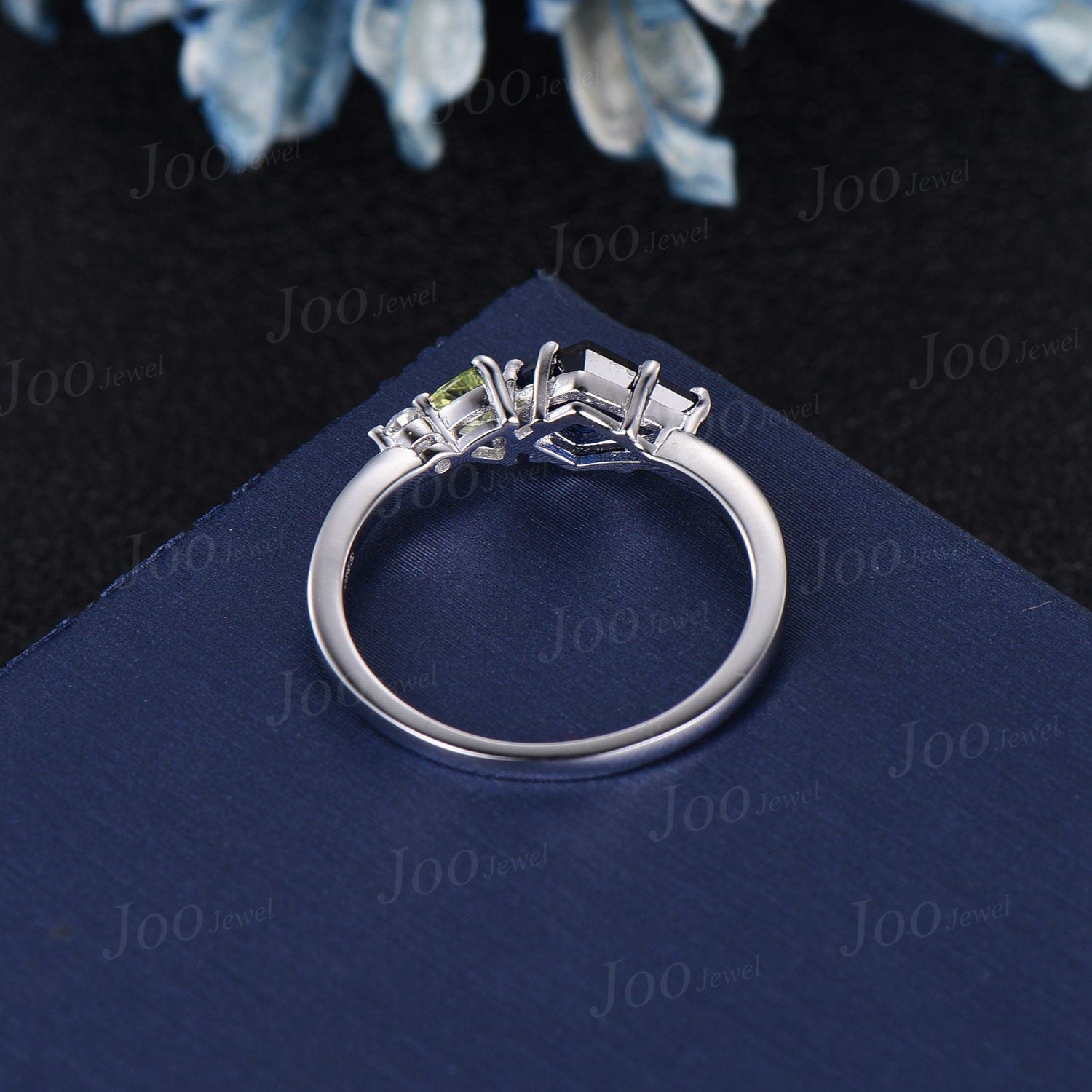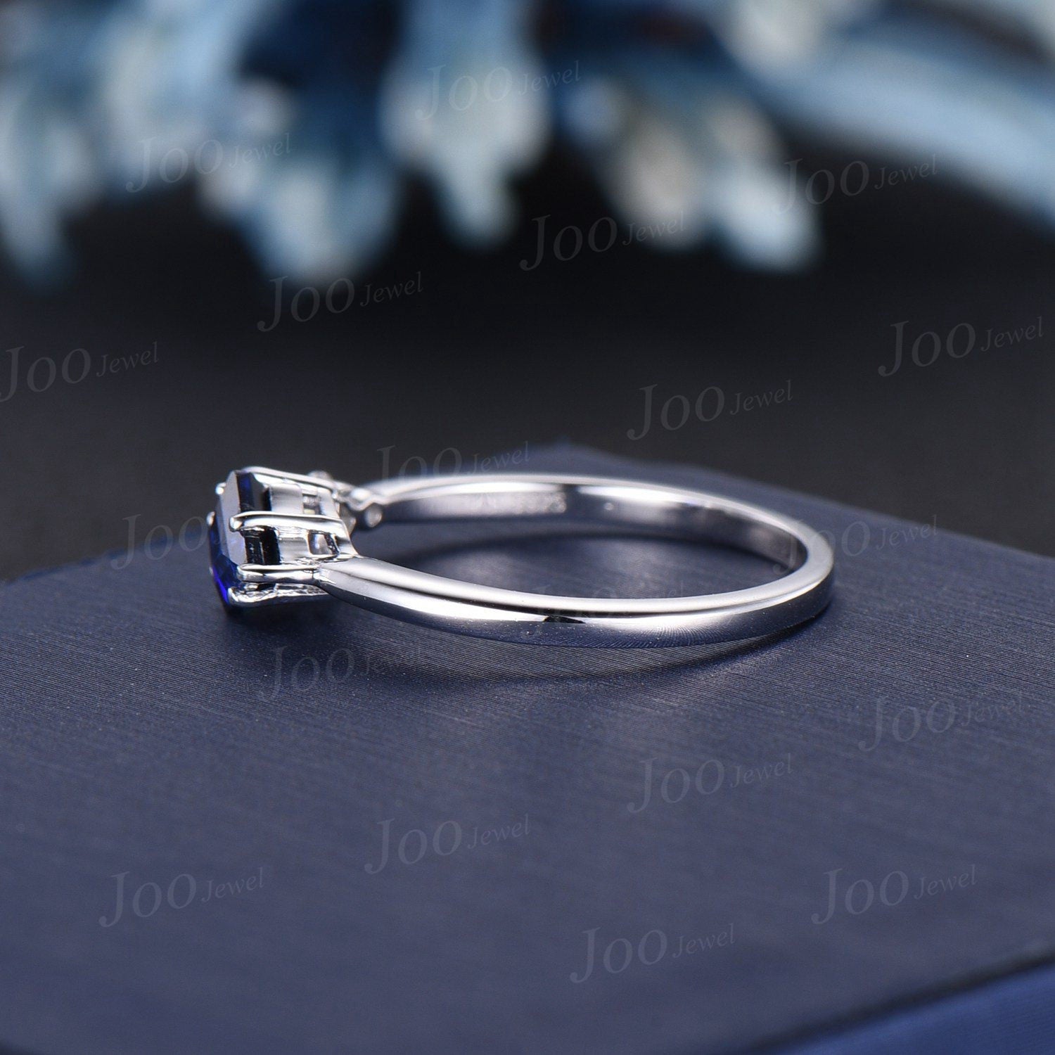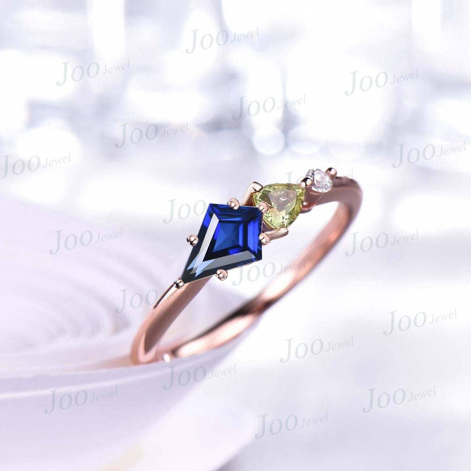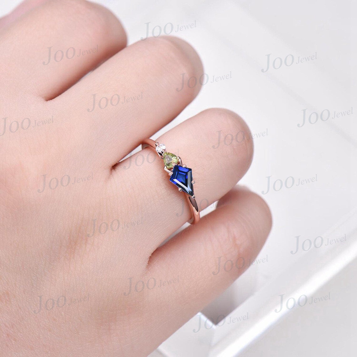 Unique September Birthstone Promise Ring Kite Shaped Blue Sapphire Engagement Rings Peridot Moissanite Three Stone Minimalist Wedding Ring